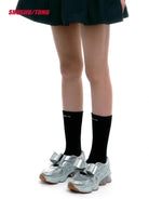 Step into the future with these 2025 winter women's casual sneakers, designed for both comfort and standout style. Featuring a striking metallic silver finish, the shoes showcase signature side striping and a playful oversized bow detail in place of traditional laces. A translucent bubble heel element and gum-colored rubber outsole provide both cushioning and grip, combining functionality with fashion-forward flair. Perfect for elevating your everyday sporty look.