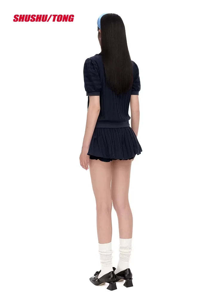 shushutong 2025 Winter Women's Pleated Mini Skirt Pants