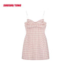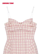 shushutong Elegant Gingham Double Bow Spaghetti Strap Dress