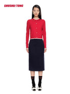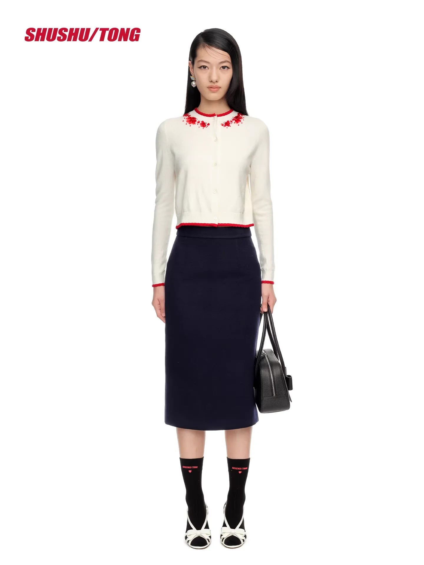 This women's knit cardigan blends spring-summer comfort with refined elegance. Designed with a fitted silhouette, it features a button-down front and delicate floral embroidery near the collar. Sequin embellishments add a subtle sparkle, while crisp white trim on the hem and cuffs offers a polished finish. Perfect for commuter or casual wear, this cardigan effortlessly pairs with skirts or tailored bottoms for a sophisticated ensemble.