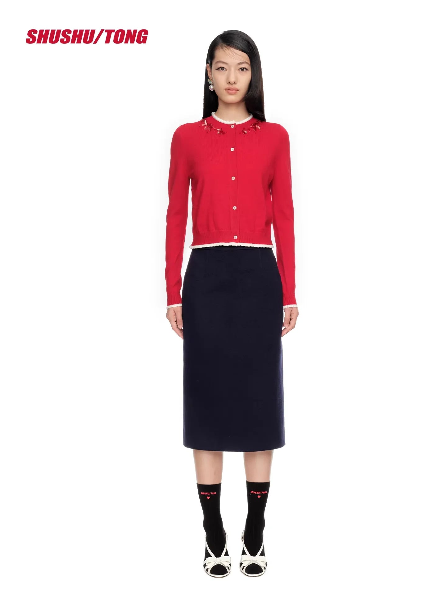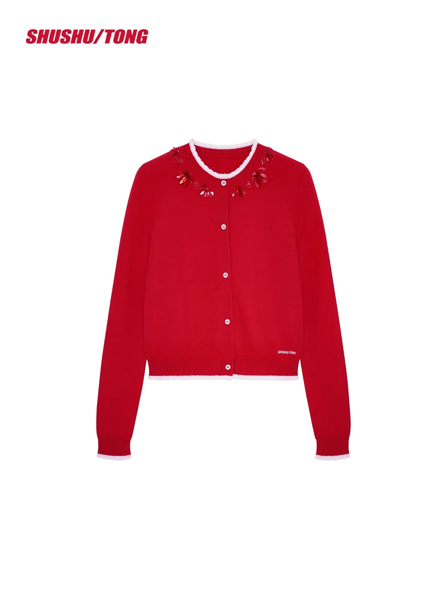 shushutong Spring Summer Elegant Knit Cardigan with Sequin and Embroidery Detail