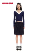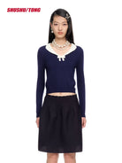 shushutong Spring Summer Elegant Knit Top with Small Lapel