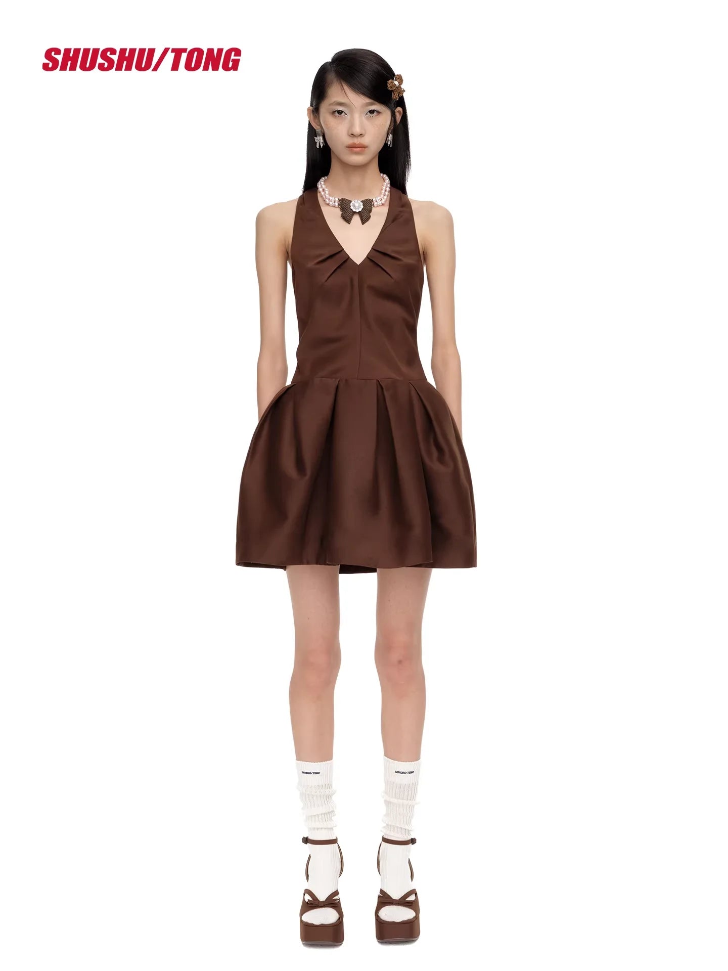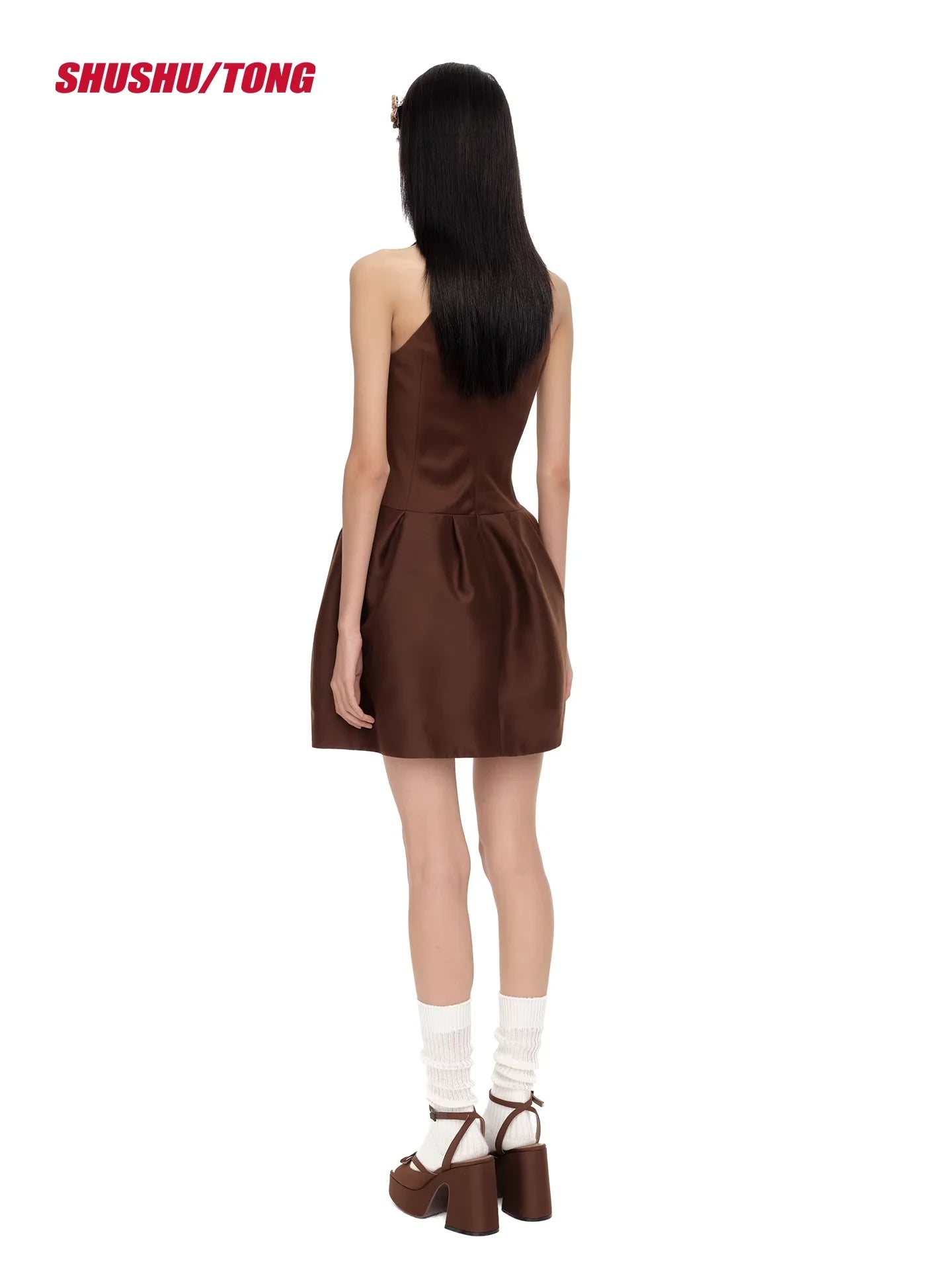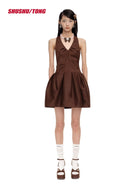 shushutong Winter Pleated Halter Mini Dress