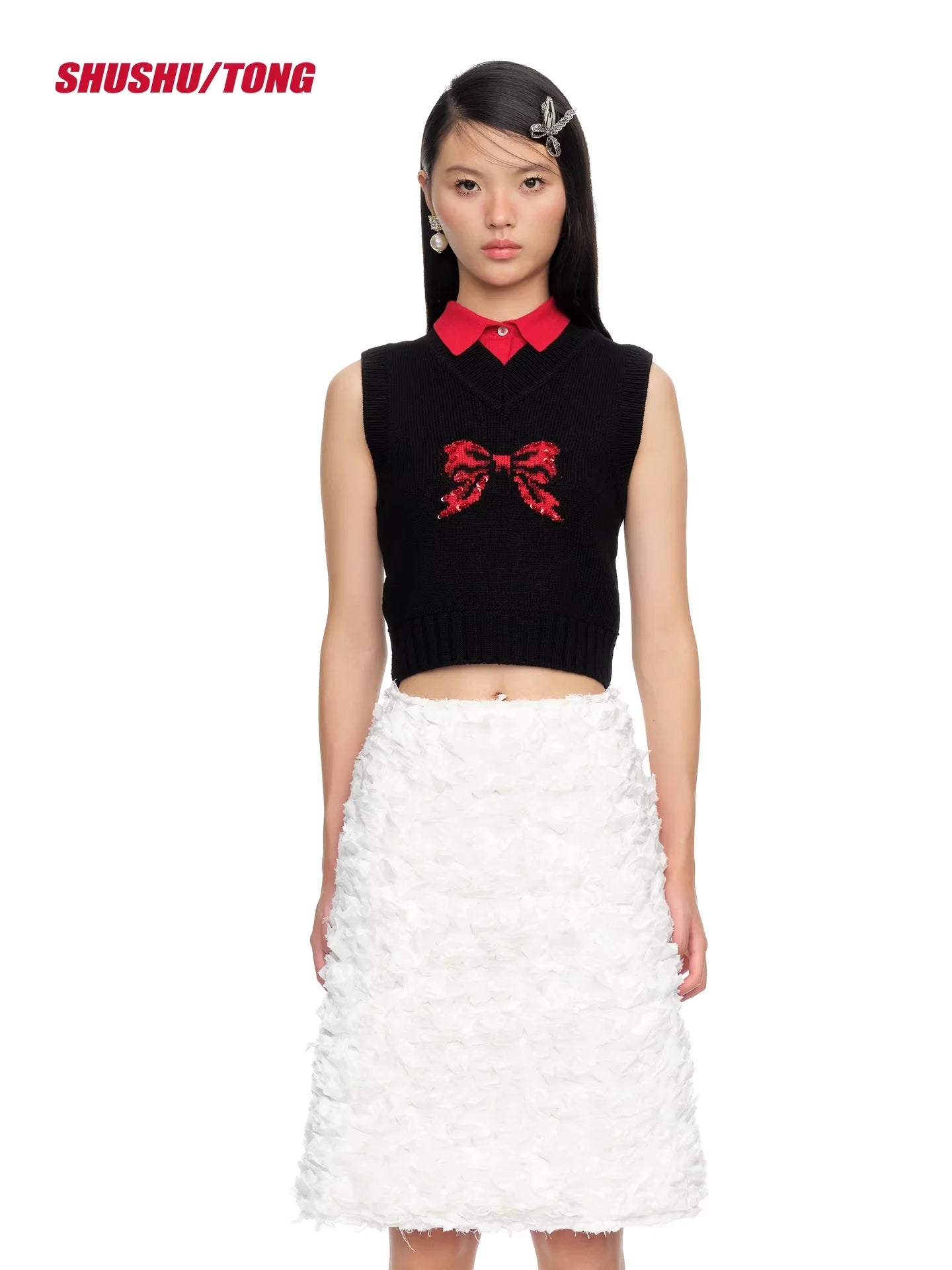 shushutong Women's Elegant Bow Knit Vest Top
