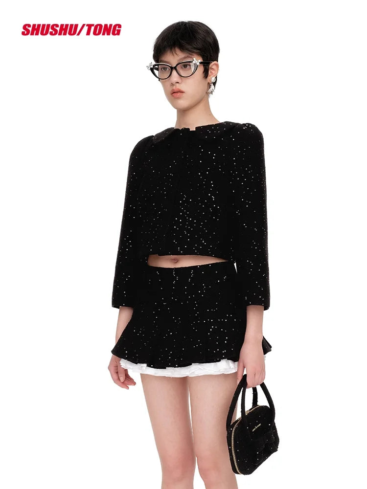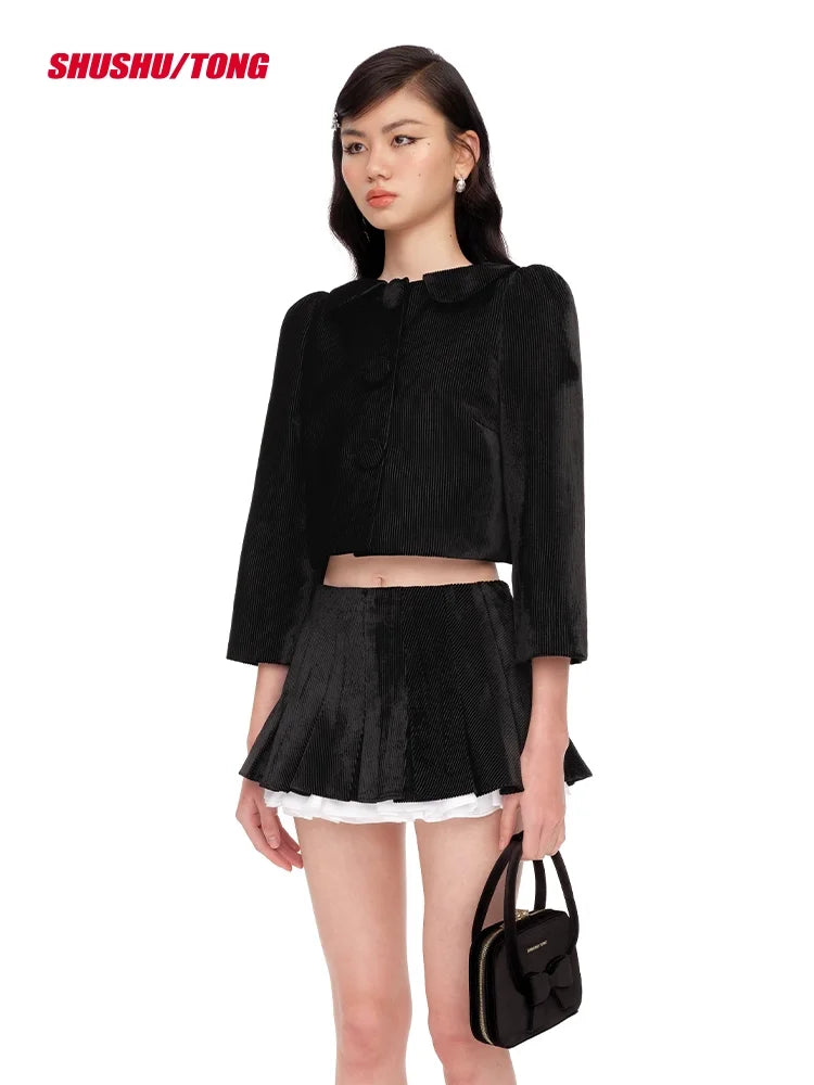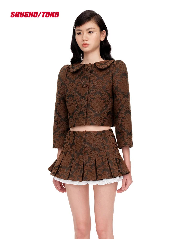 shushutong Women's Elegant Cropped Jacket with Peter Pan Collar
