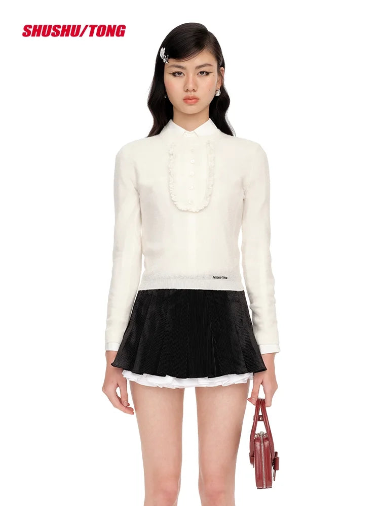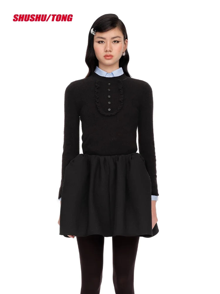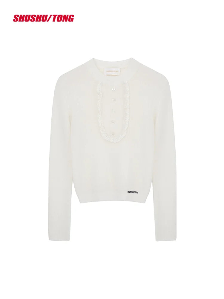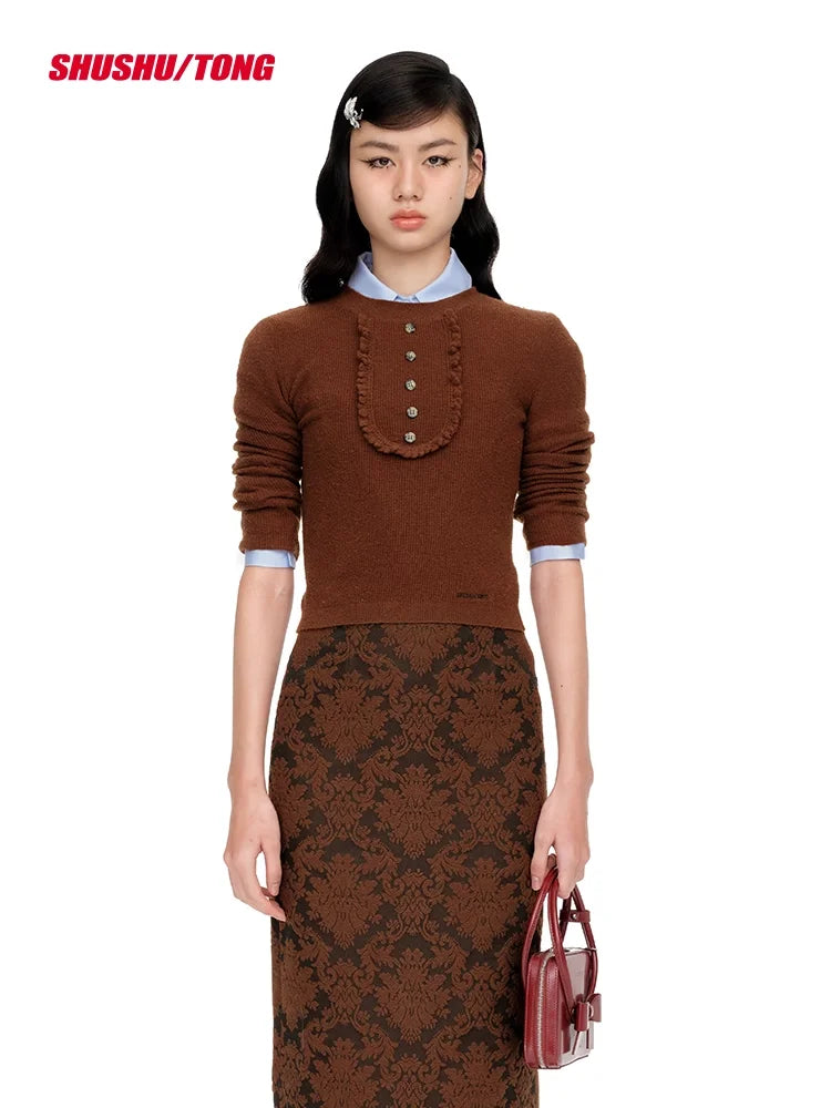 shushutong Women's Elegant Ribbed Knit Sweater with Button Detail