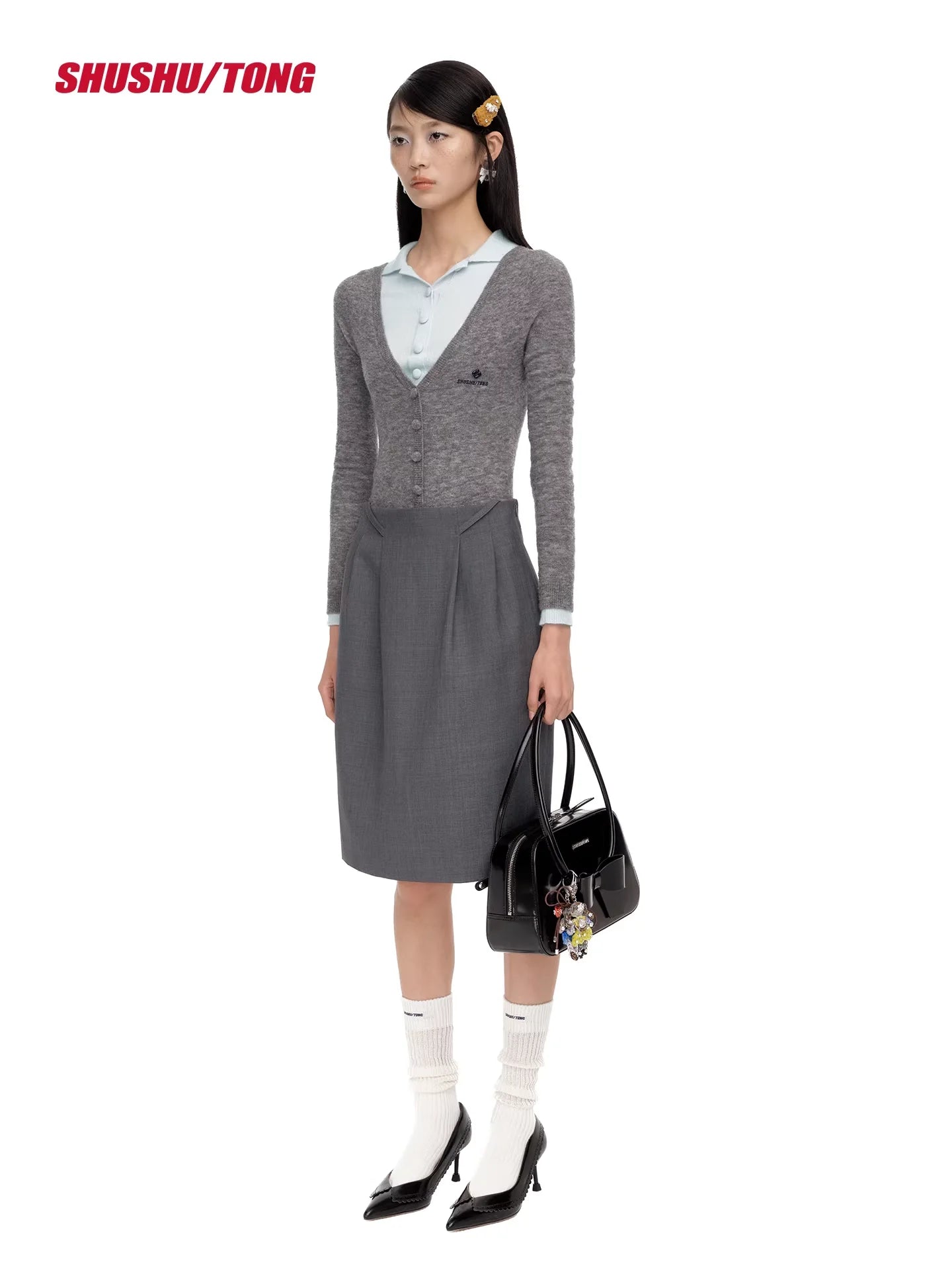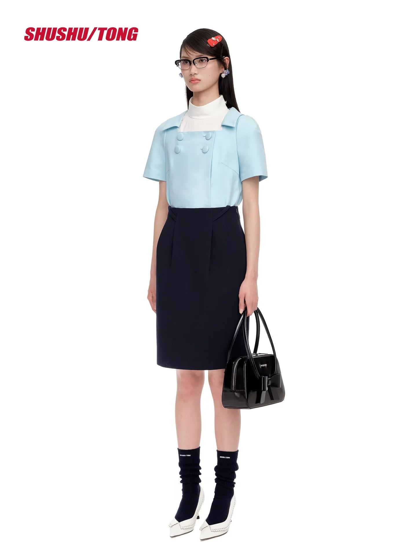 shushutong Women's Winter Pencil Skirt with Diagonal Waistband