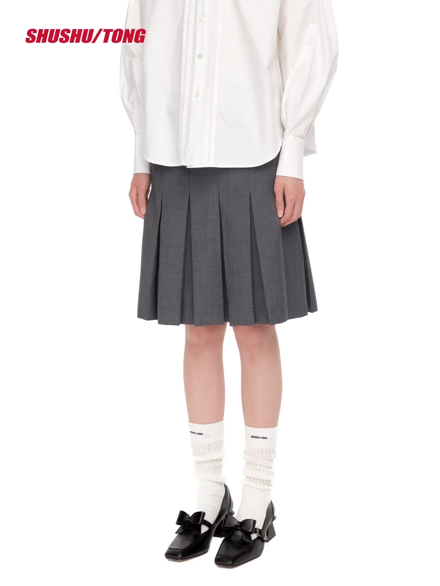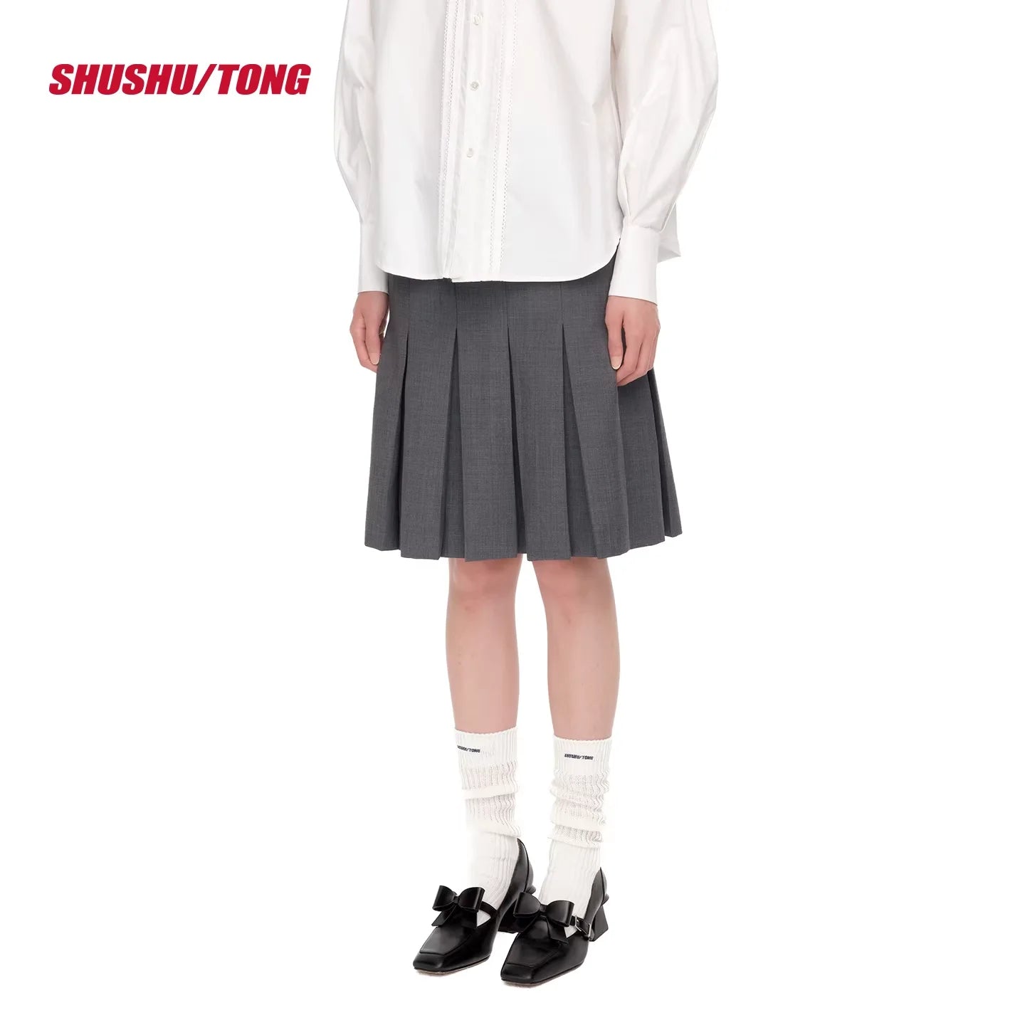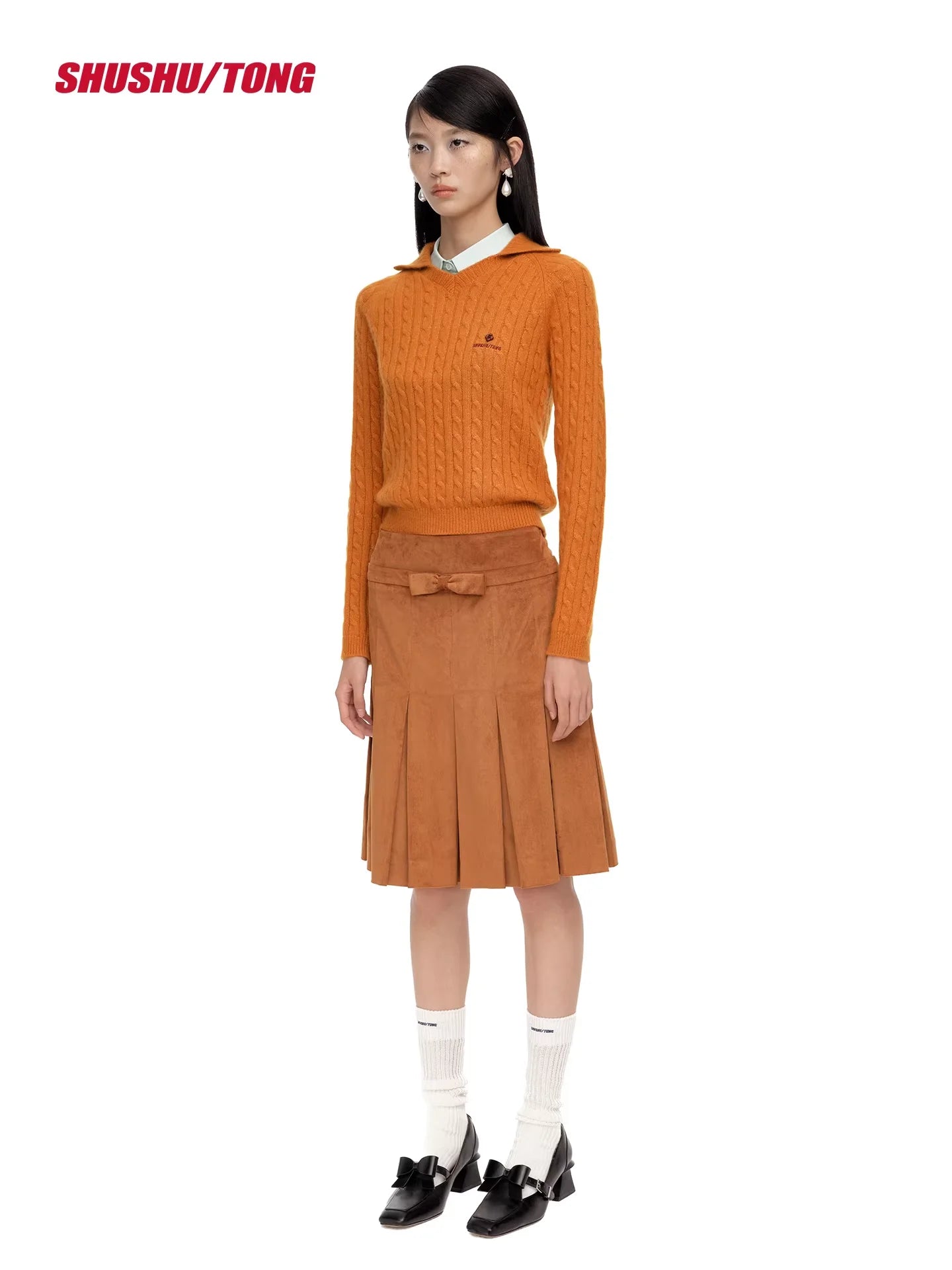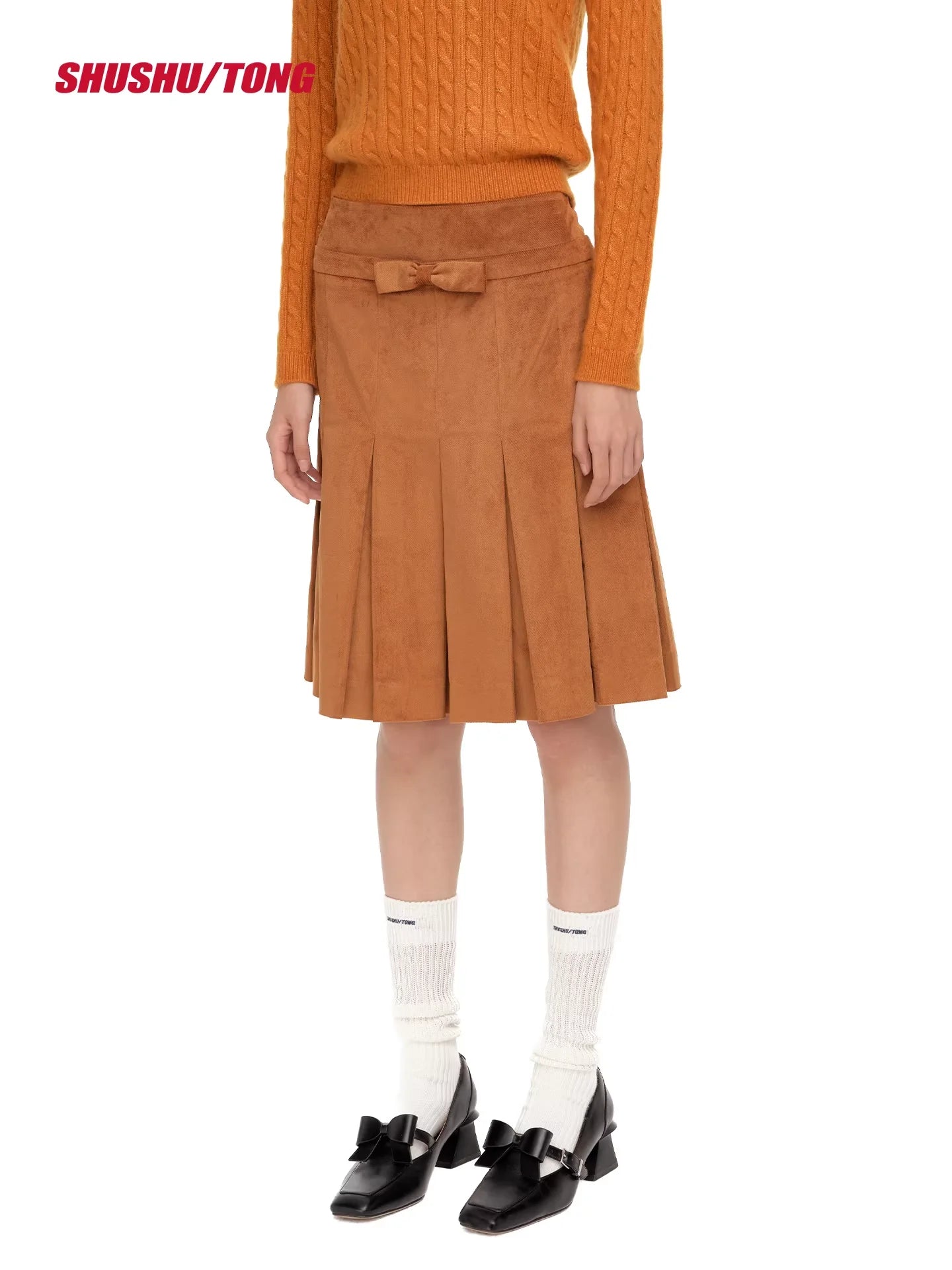 shushutong Women's Winter Pleated Skirt with Bow Waist Detail