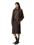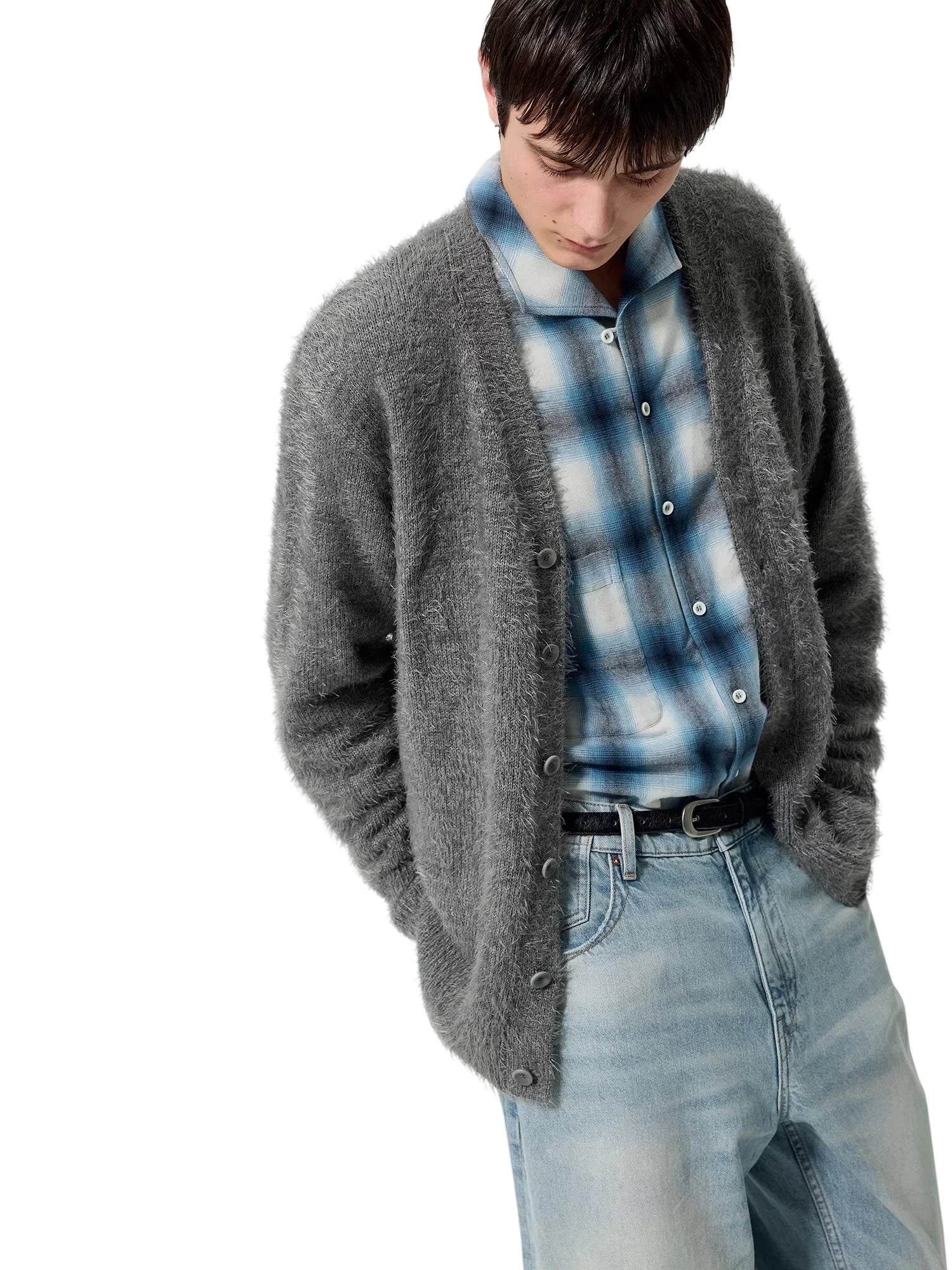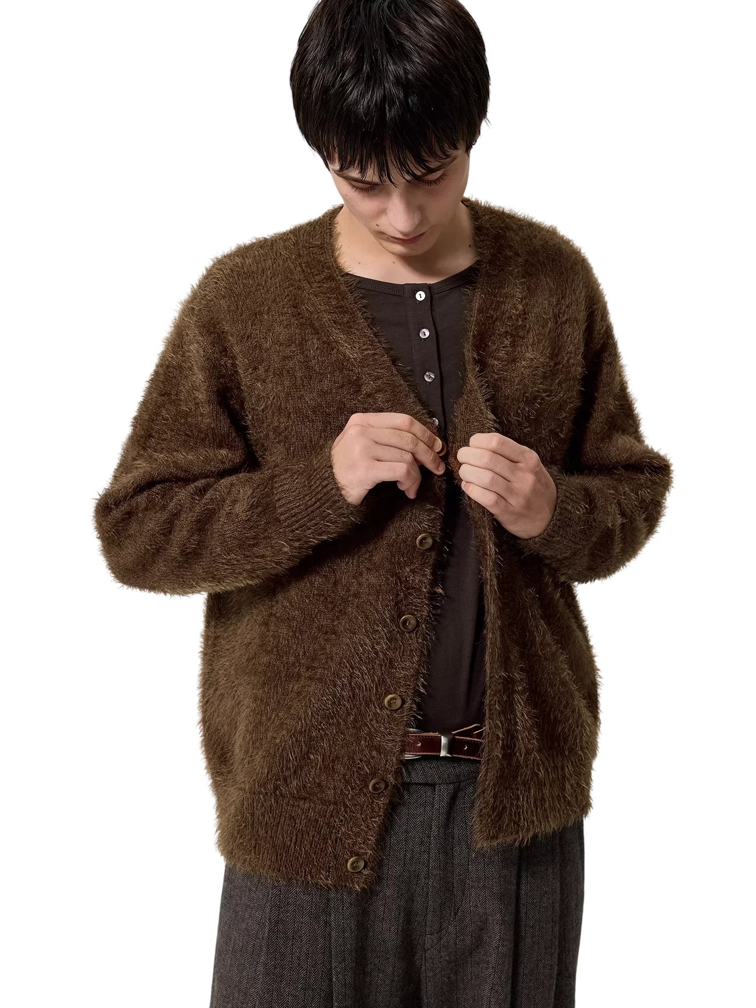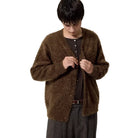 This men's brushed wool cardigan features a soft, textured knit with a relaxed fit, offering both comfort and style. Designed with long sleeves and a button-down front, it provides easy layering over casual or smart-casual outfits. Styled in a cozy brown hue, it pairs seamlessly with trousers or denim for a laid-back yet refined look.