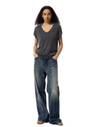 Simple Project Men's Wide-Leg Lightning Wash Distressed Jeans