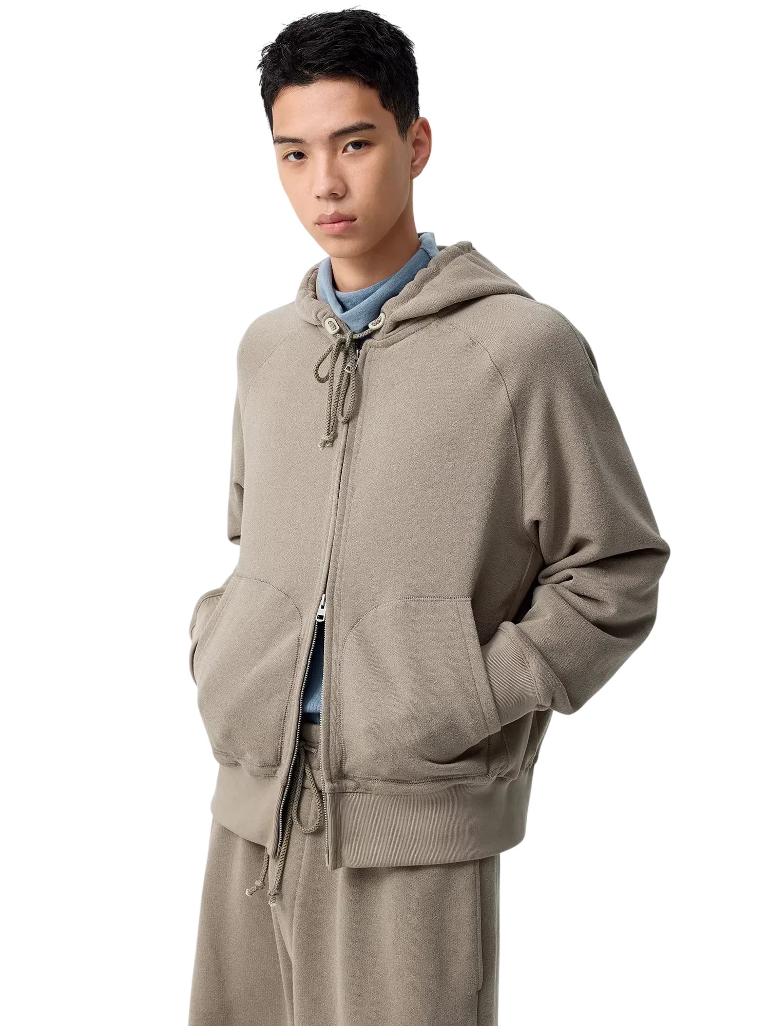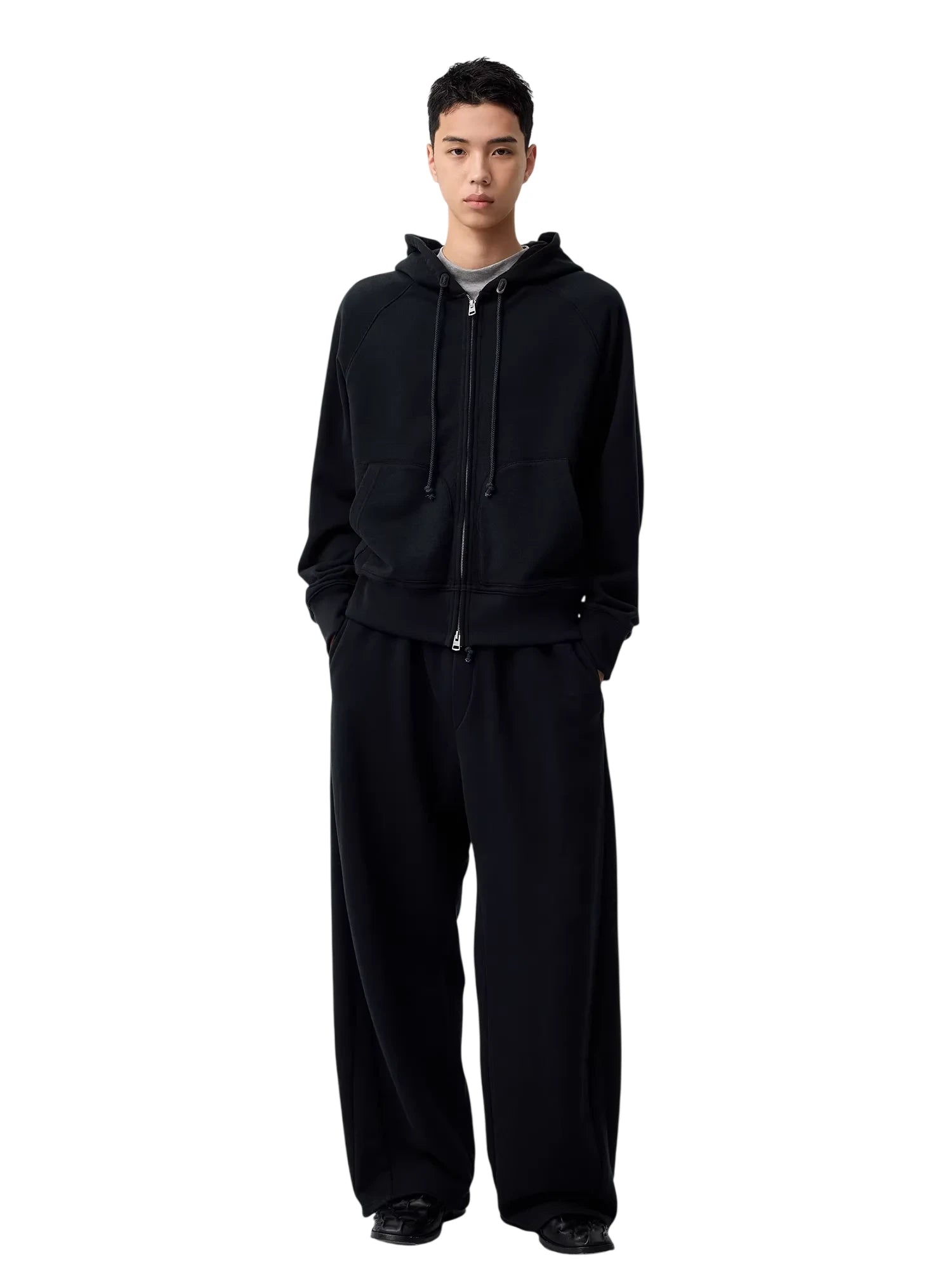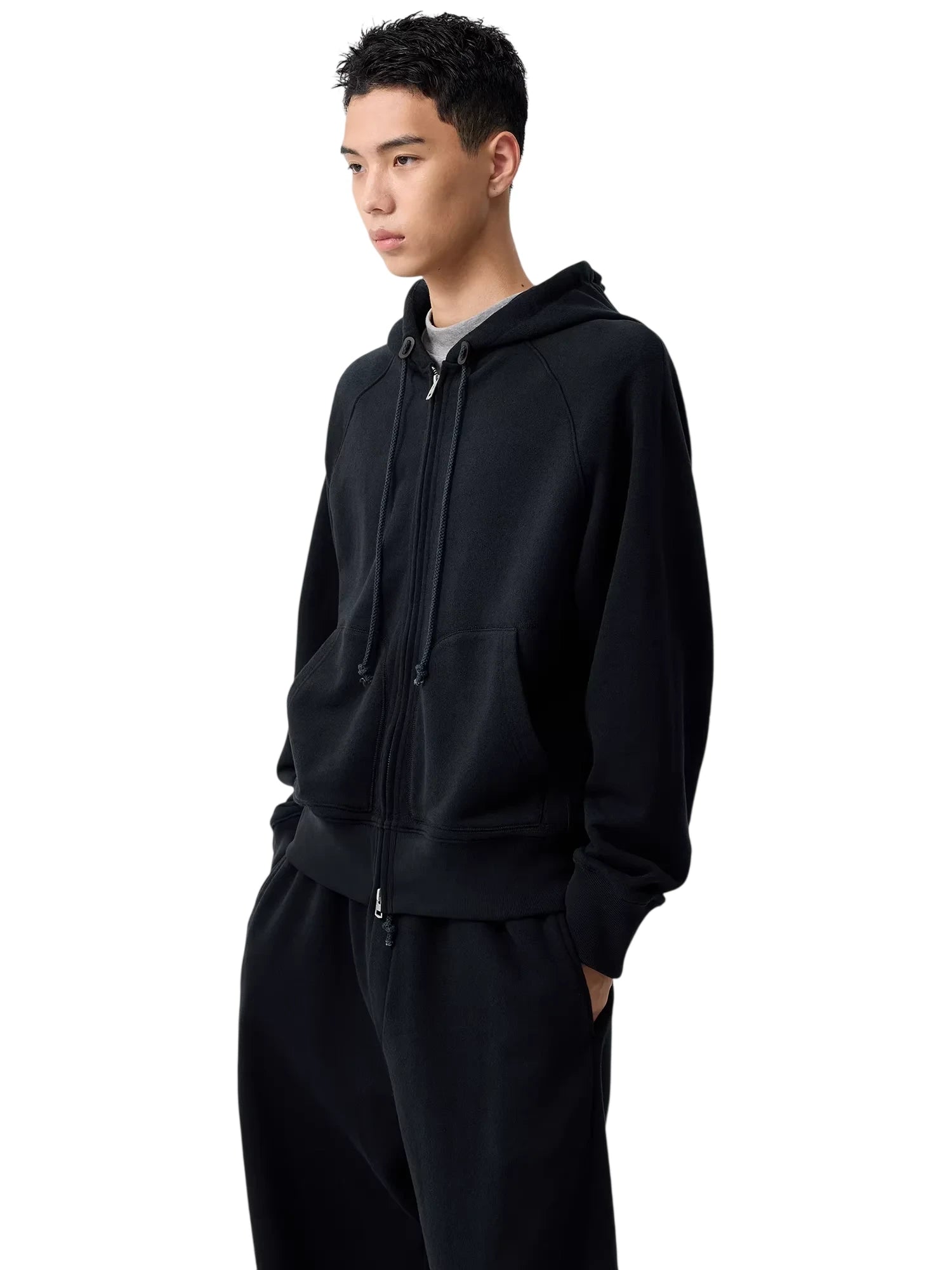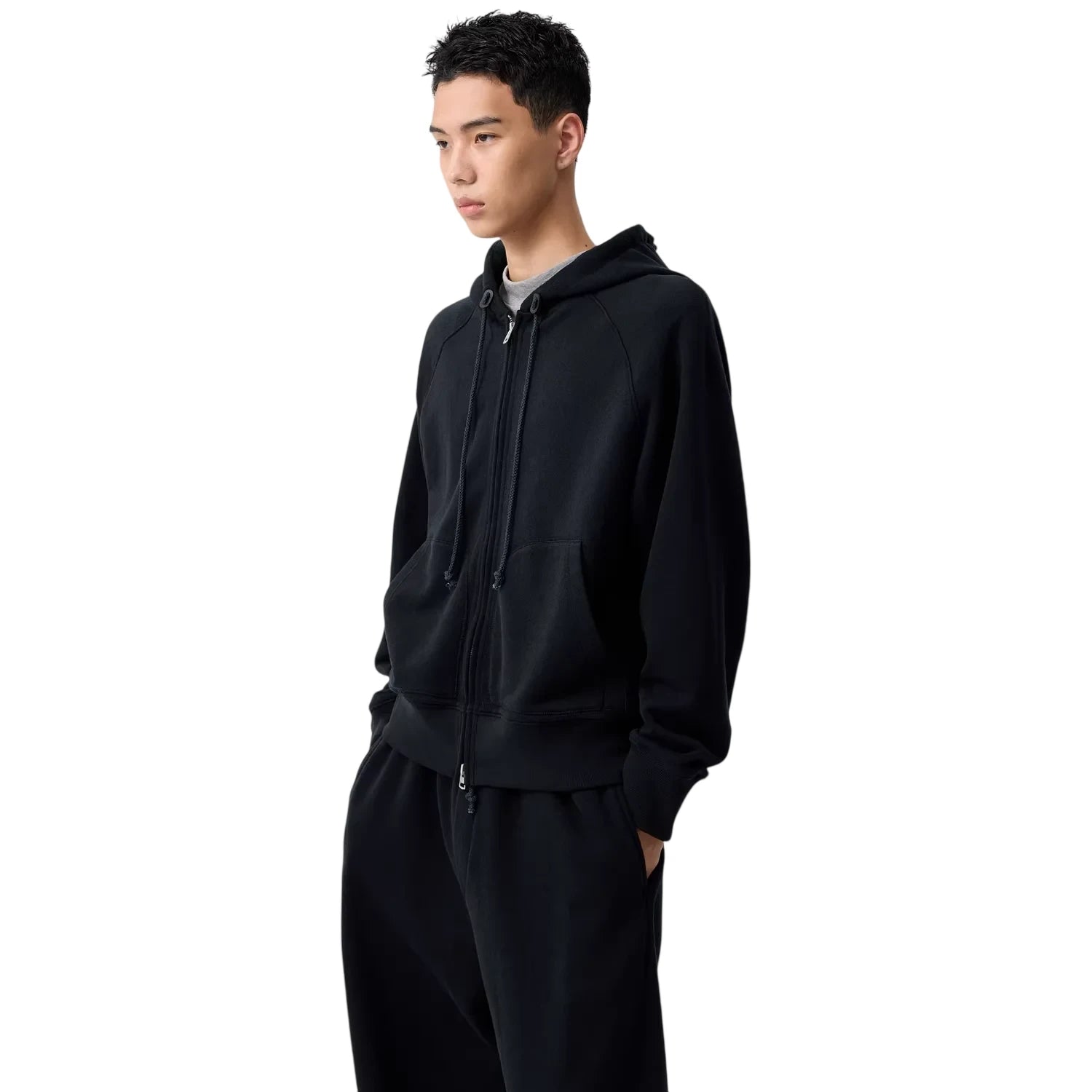This men's zip-up training hoodie combines style and comfort with a minimalist design perfect for everyday wear. It features a full front zipper closure, adjustable drawstring hood, long sleeves, and a practical kangaroo pocket for added warmth and convenience. Ideal for both lounging and casual outings, this sweatshirt offers a comfortable fit and versatile look.