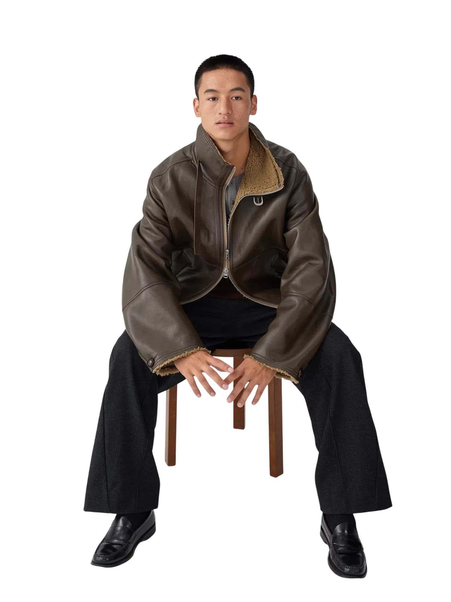 Simple Project Oversized Shearling Leather Jacket