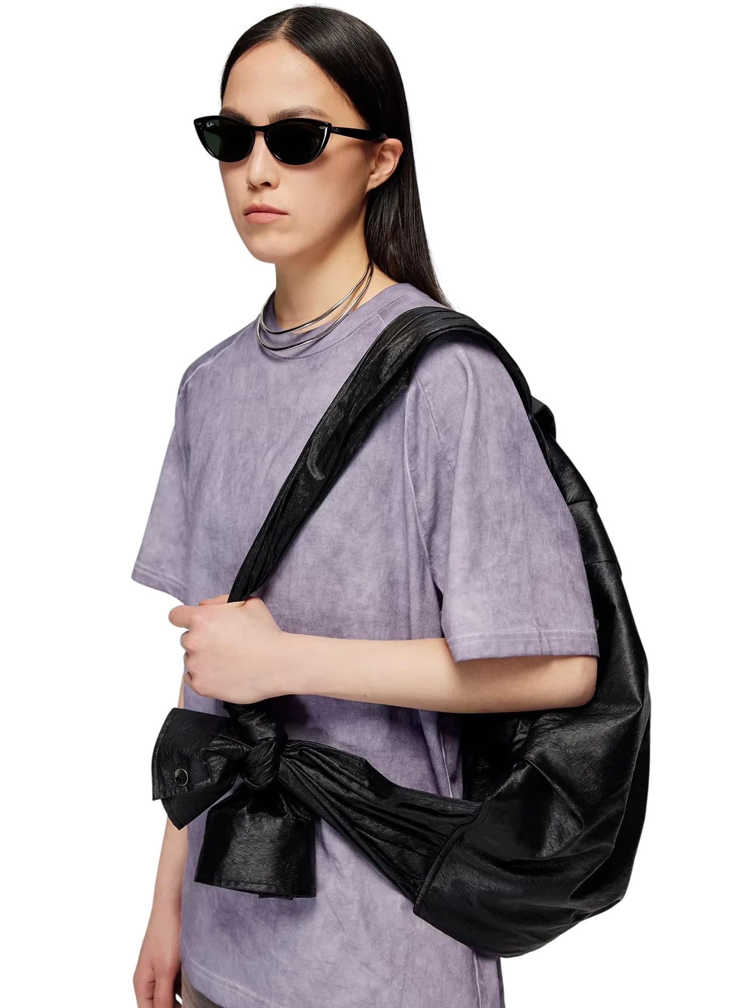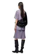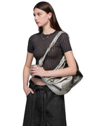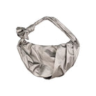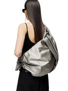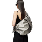 This women's crossbody backpack features a striking pleated design and metallic silver finish, blending contemporary style with functional elegance. The adjustable shoulder strap offers versatile wear, while the crinkled texture adds a modern, relaxed silhouette. Perfect for everyday use or statement styling, this bag combines fashion-forward appeal with practical convenience.