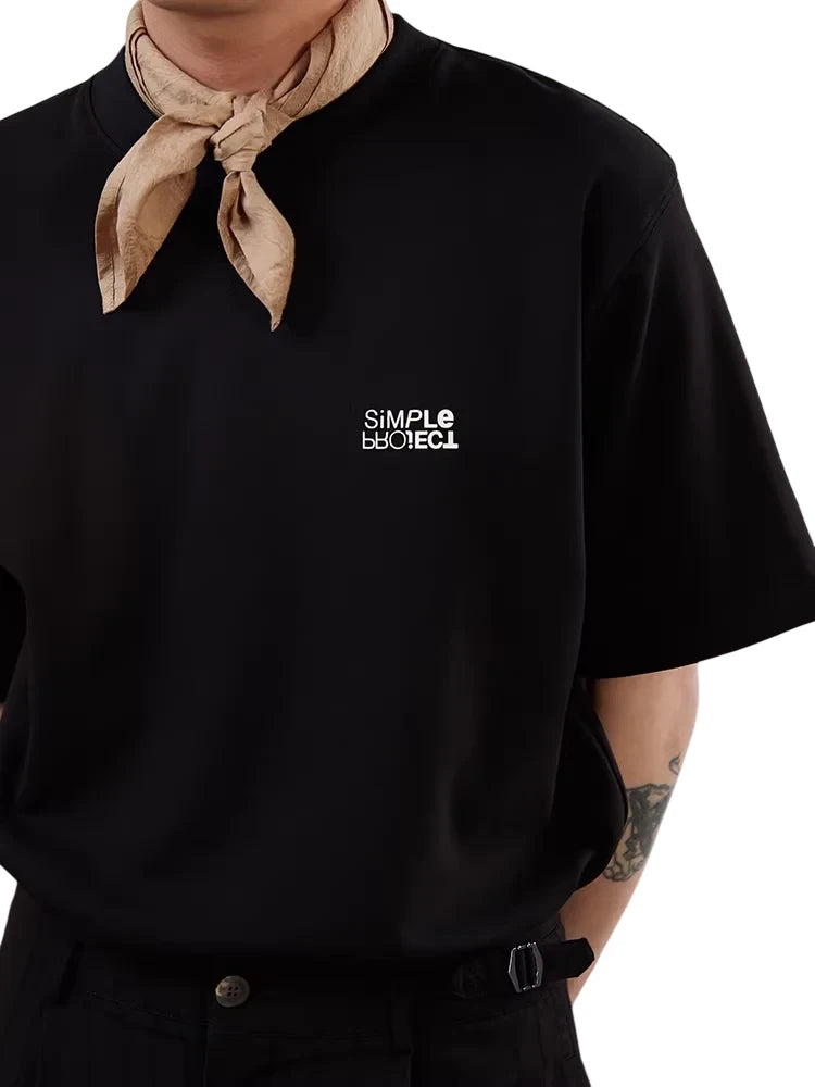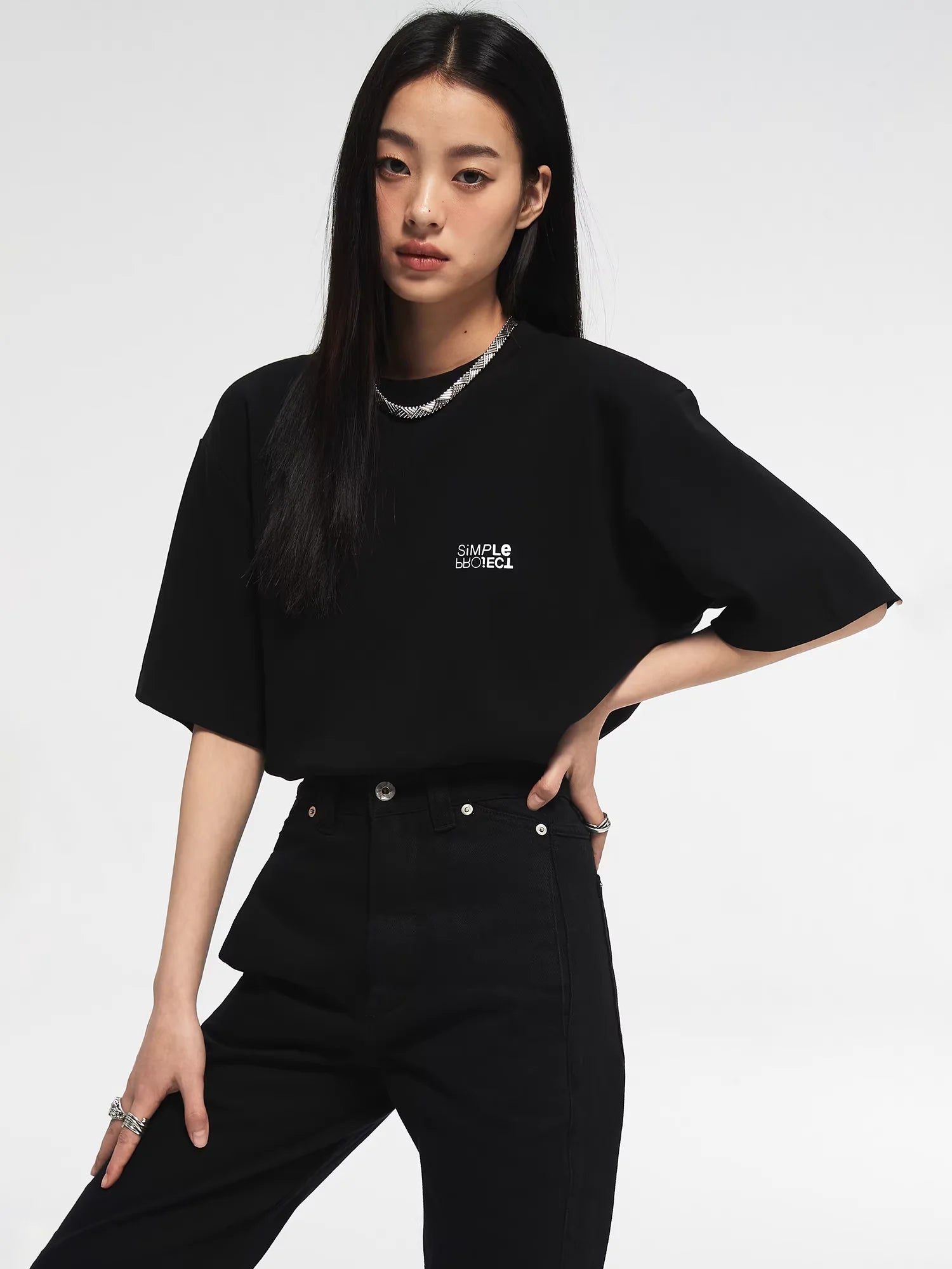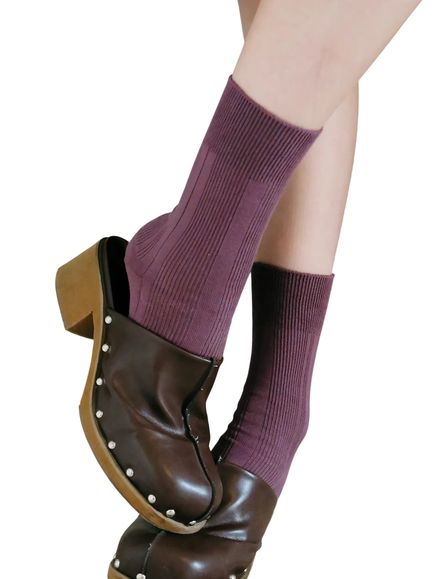 Simple Project Unisex Ribbed Mid-Calf Cotton Socks with Embroidered Detail