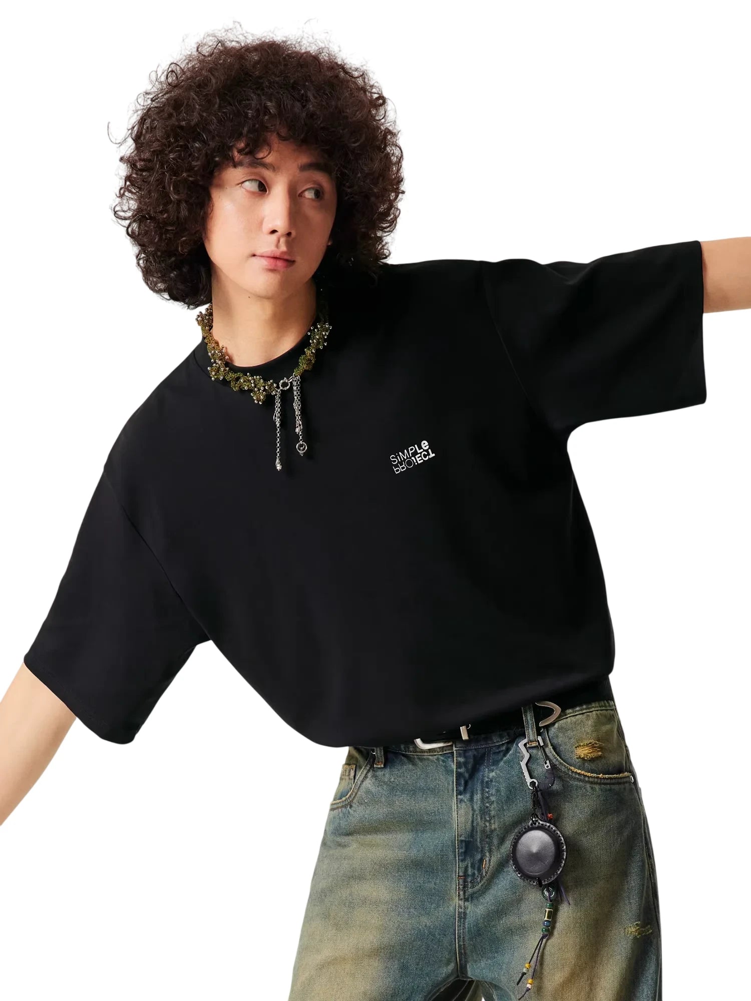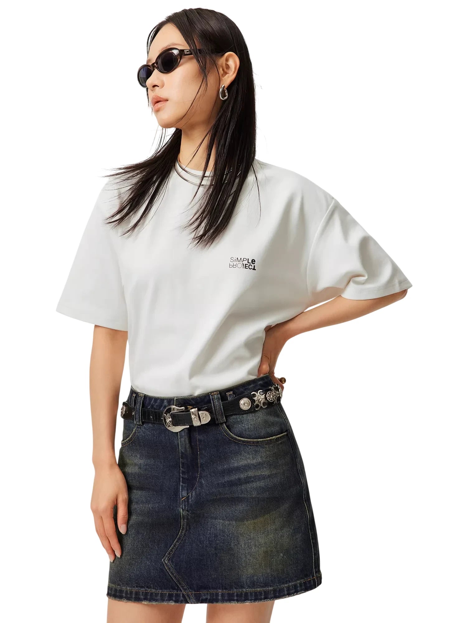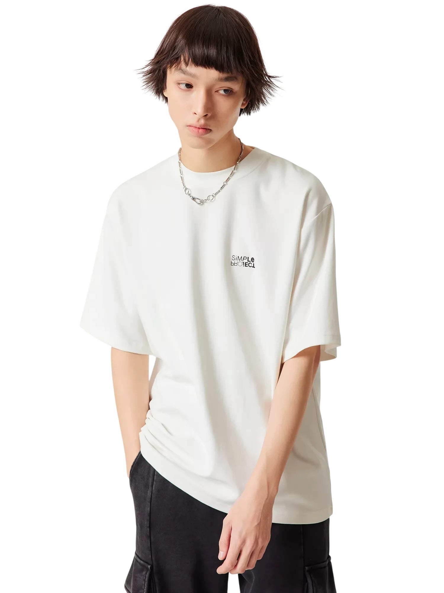 Simple Project Unisex Ribbed Mid-Calf Cotton Socks with Embroidered Detail