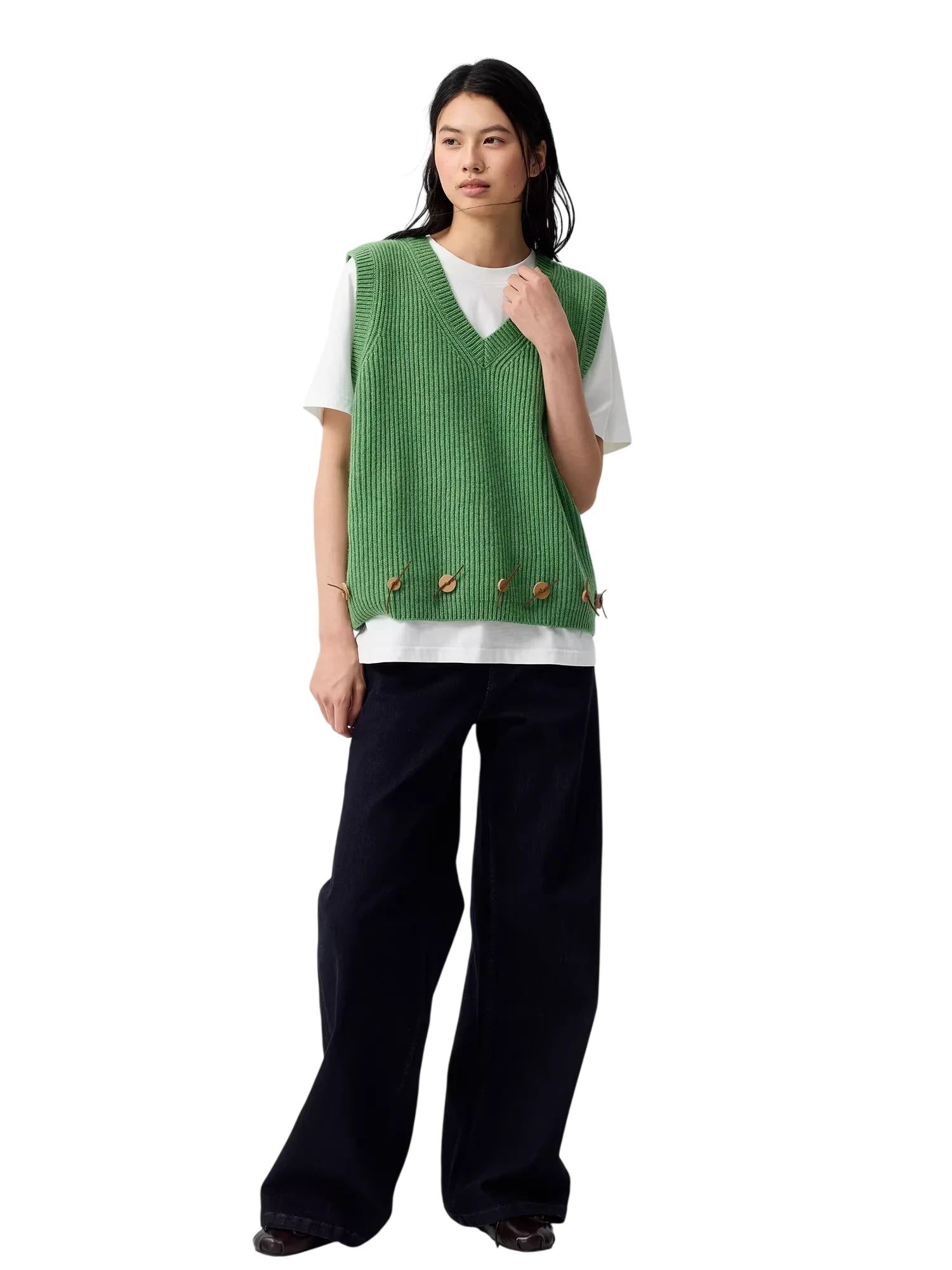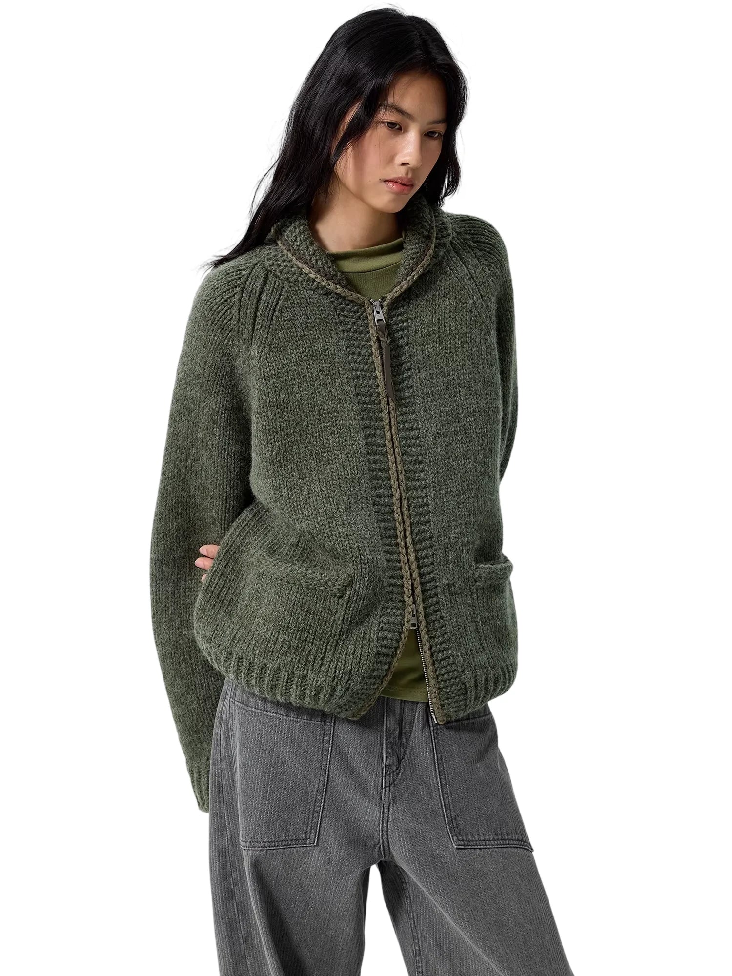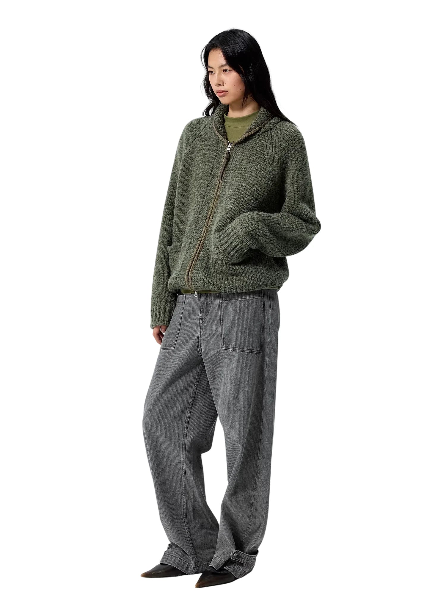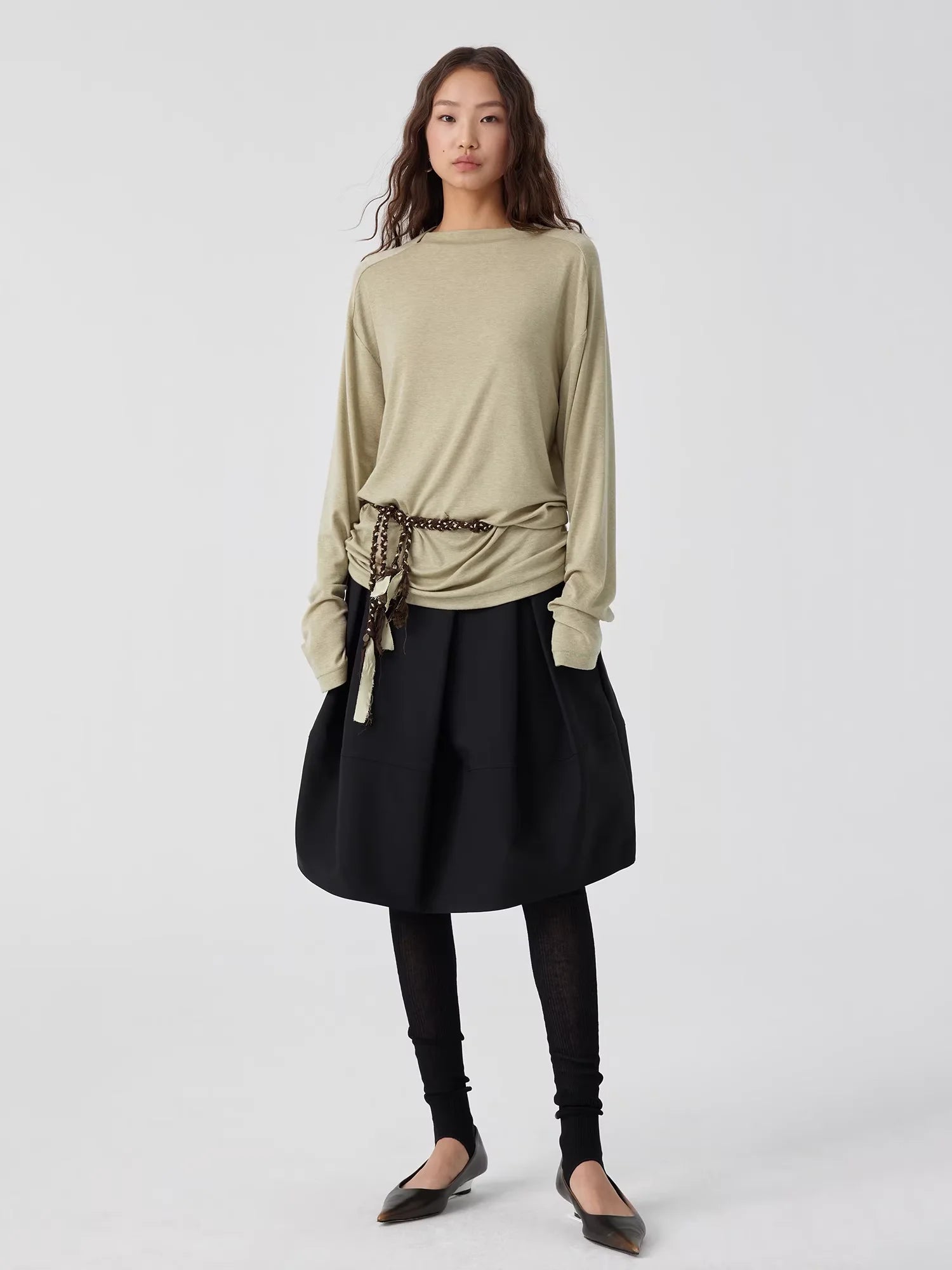 Simple Project Women's Wool Knit Midi Skirt with Side Button and Slit
