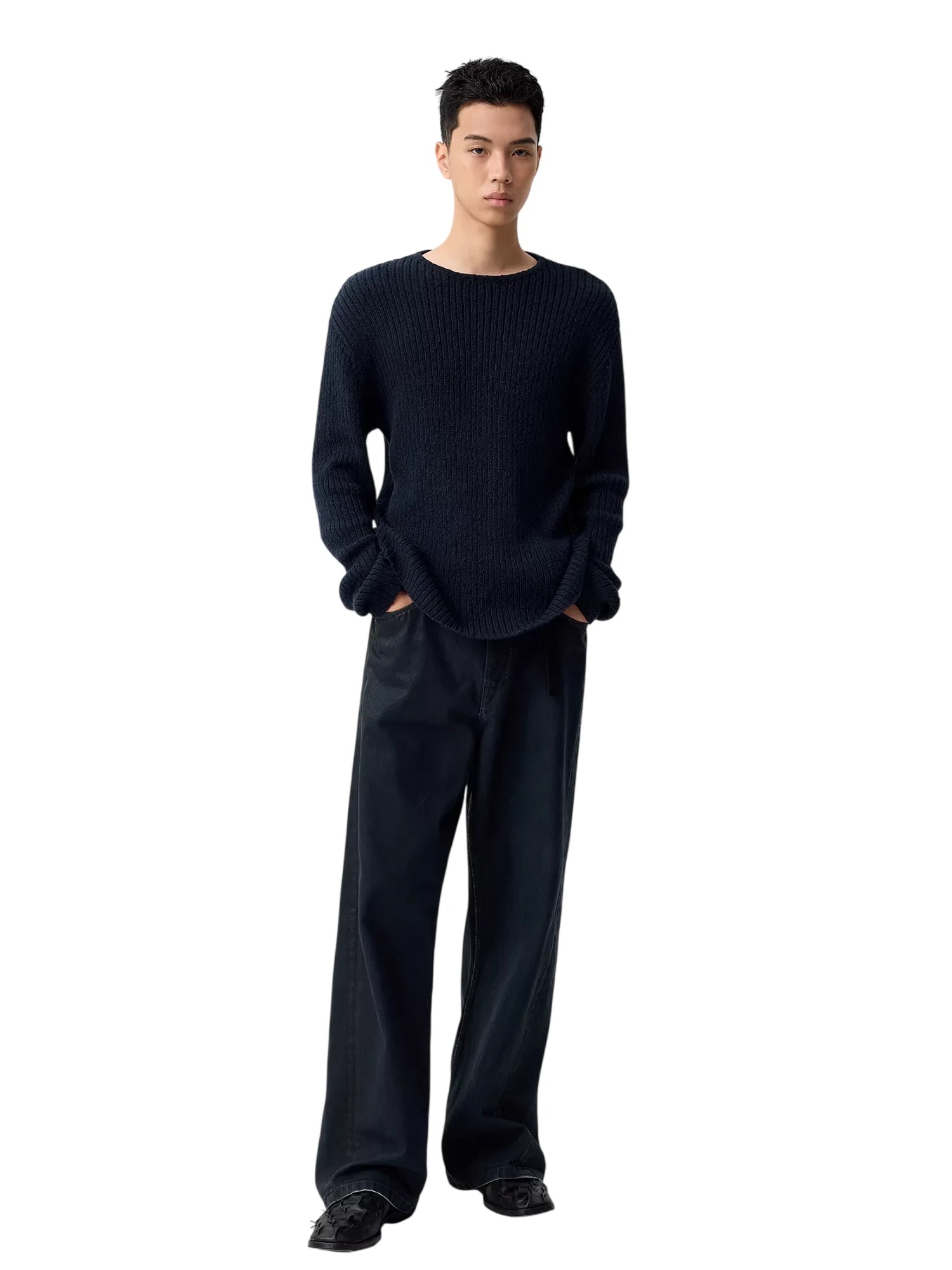 Simple Project Men's Ribbed Cotton Sweater - Slim Fit