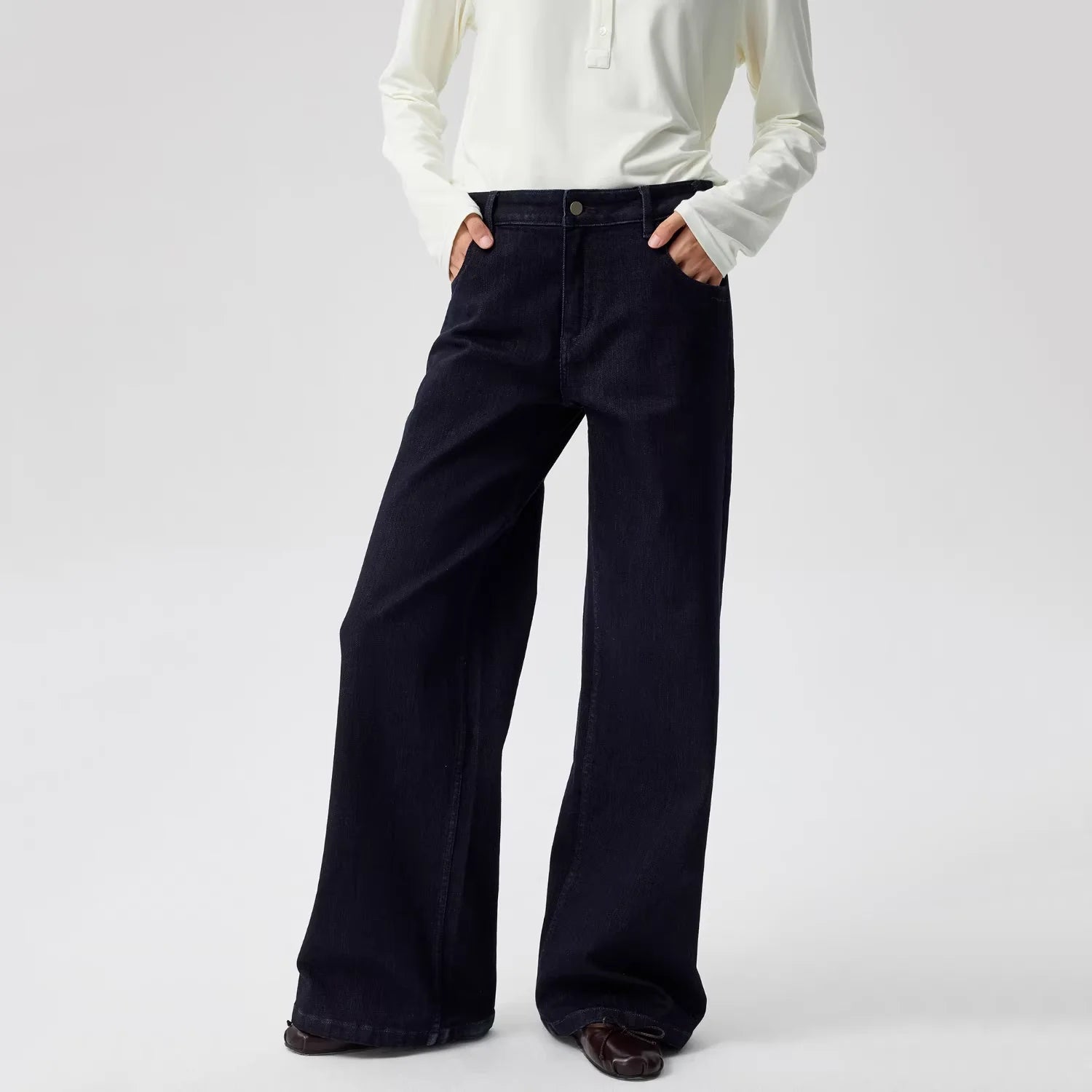 Simple Project Women's Dark Blue Wide-Leg Jeans