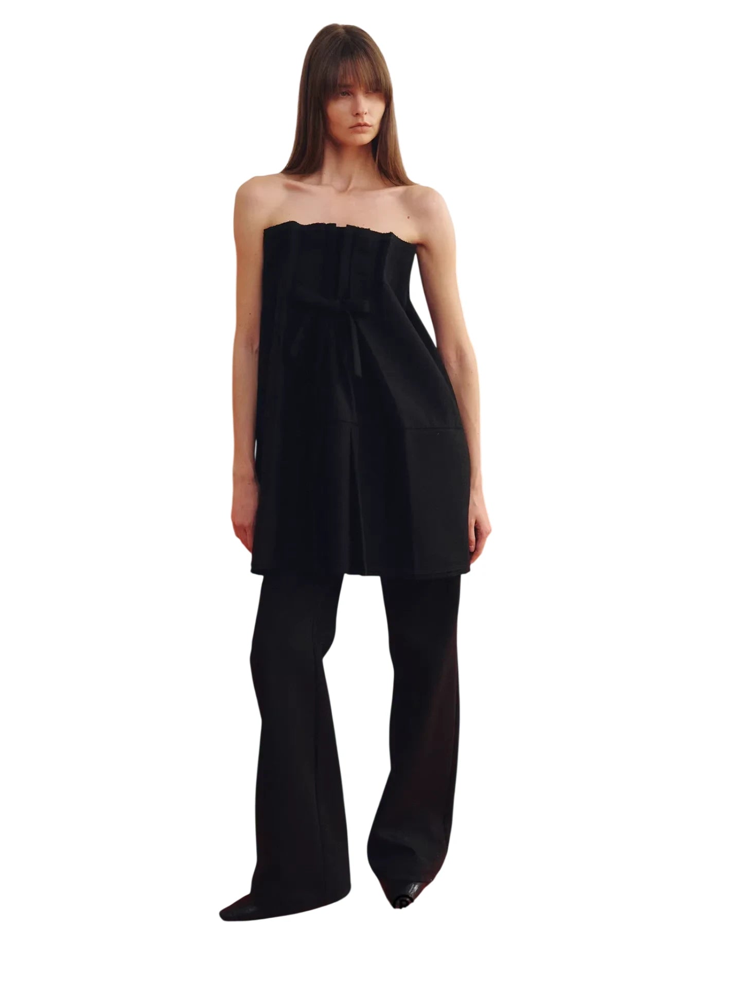 ACSENSE STUDIO Strapless Wool Mini Dress with Bow Detail