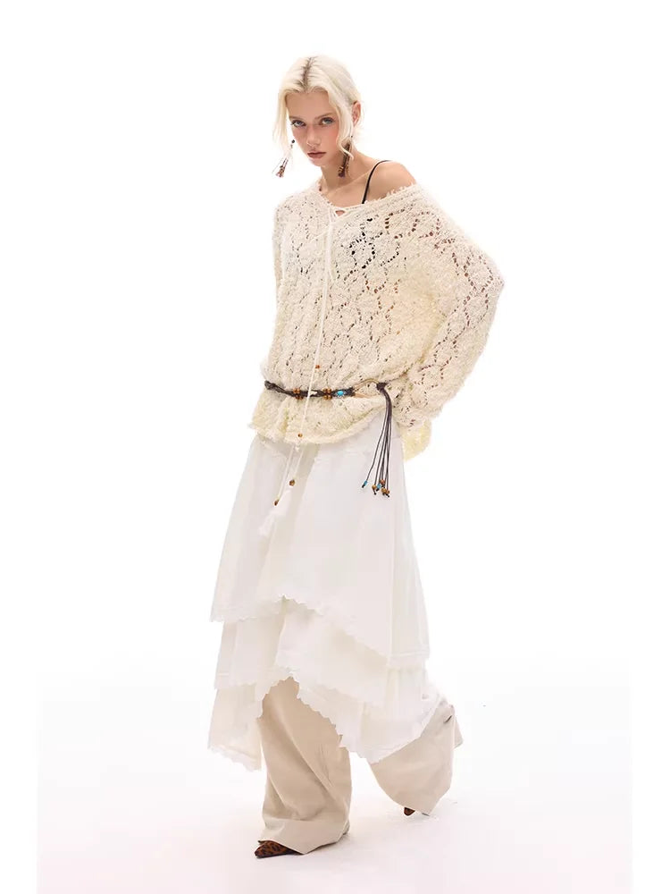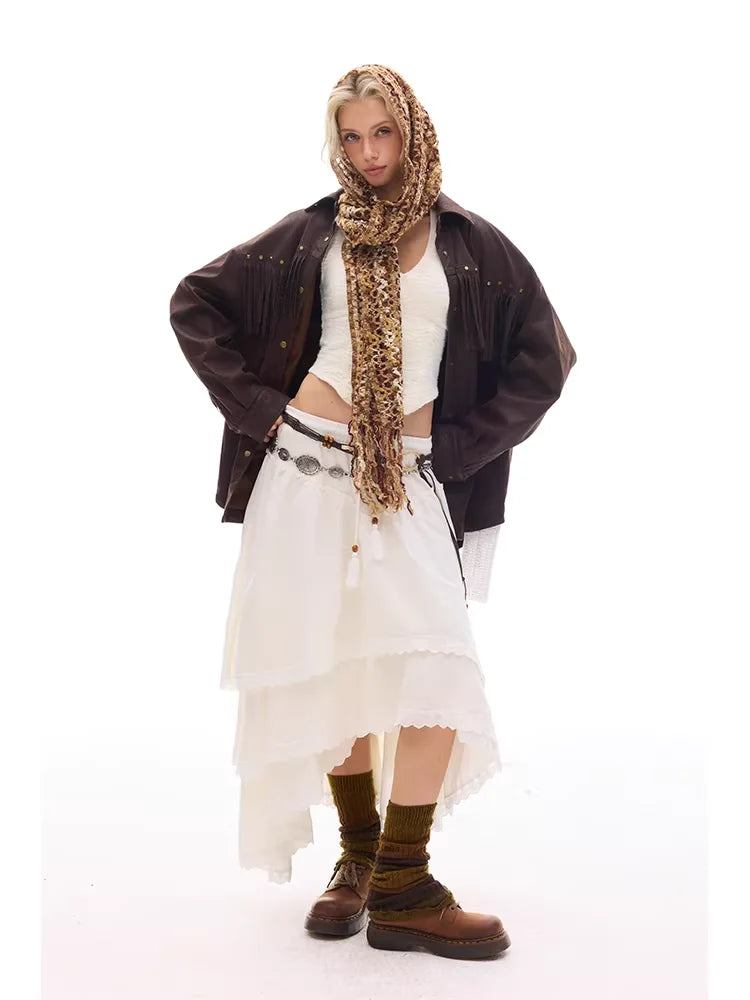 Embrace effortless boho charm with this women's A-line skirt, featuring a soft cotton-linen blend and a flattering multi-layered design. The asymmetrical high-low hem adds visual interest, while delicate lace trim offers a romantic, handcrafted touch. Ideal for creating flowing, free-spirited ensembles, this versatile skirt pairs beautifully with cropped tops, statement belts, and boots for a complete bohemian look.
