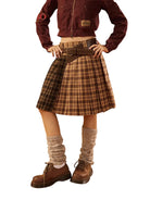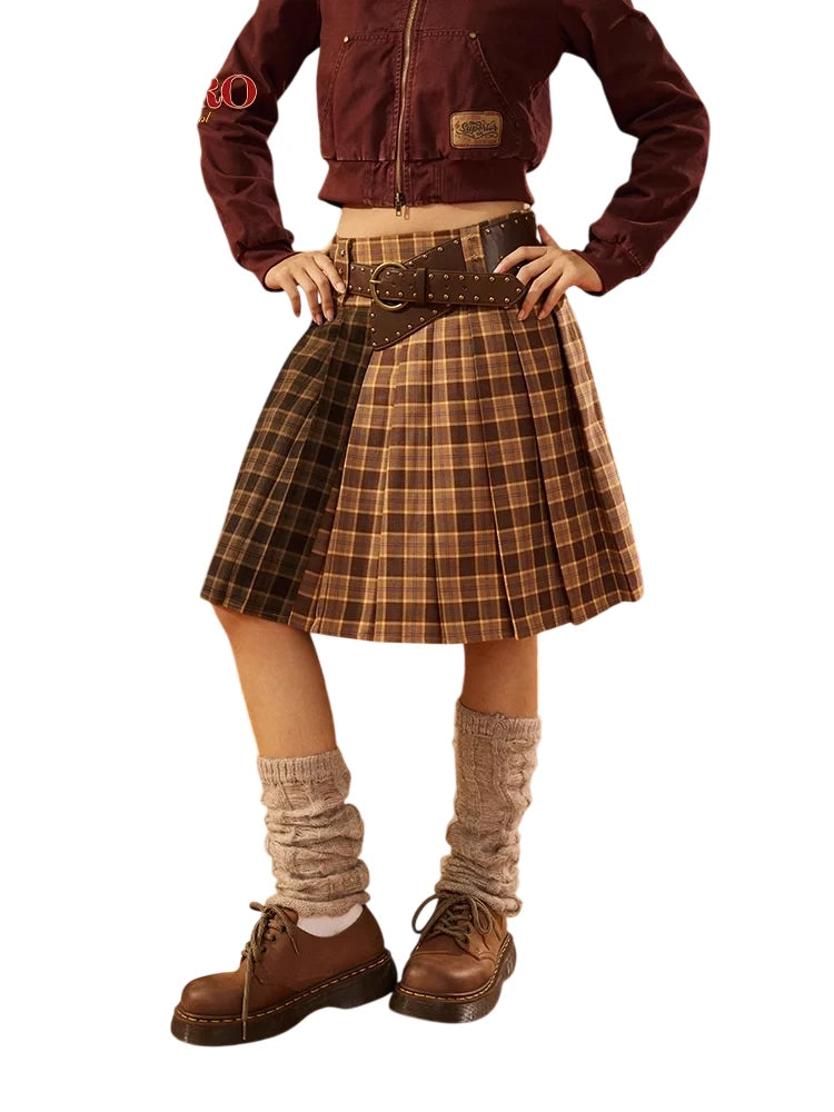 BeerBro Colorblock Plaid Pleated A-Line Mini Skirt for Women