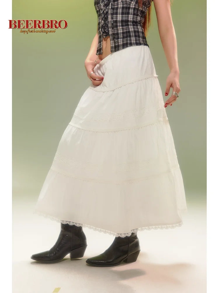 BeerBro Lace Trim Tiered Midi Skirt with Ruched Detailing