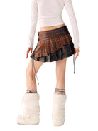 BeerBro Plaid Pleated Mini Skirt with Faux Leather Waistband
