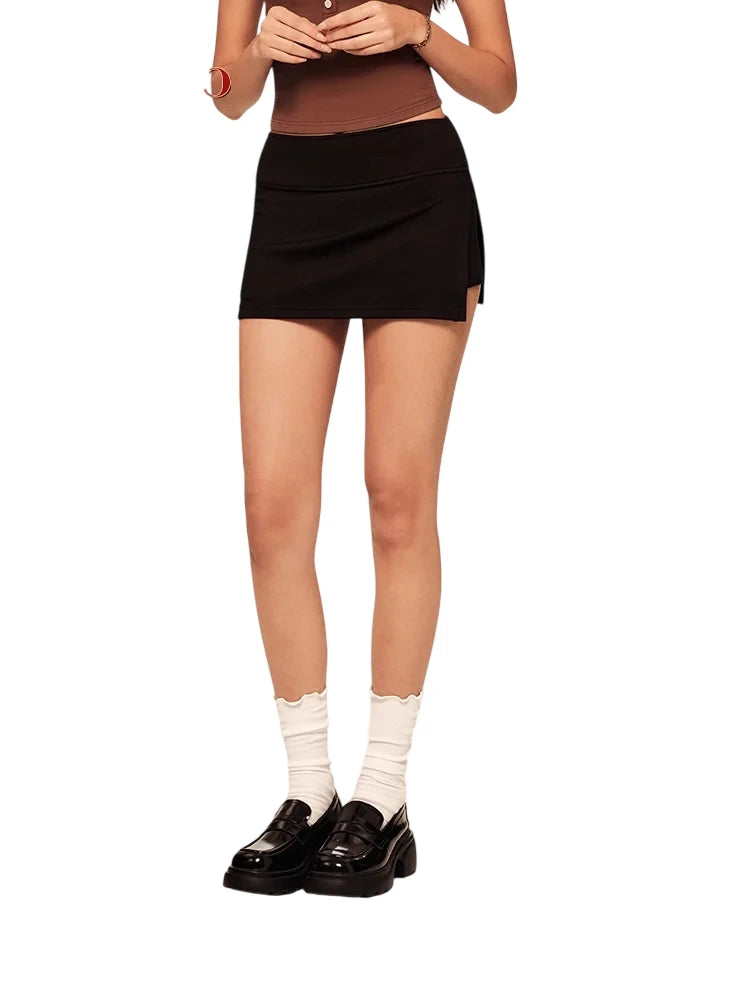 BeerBro Retro High Waist Knit Slit Mini Skirt