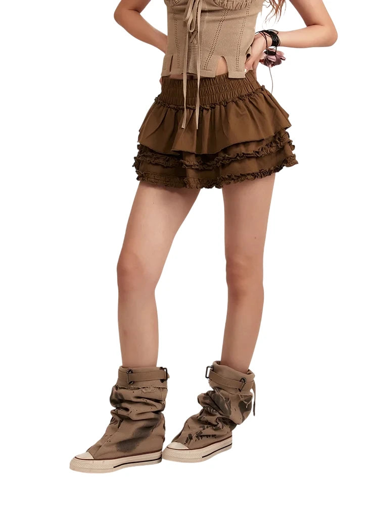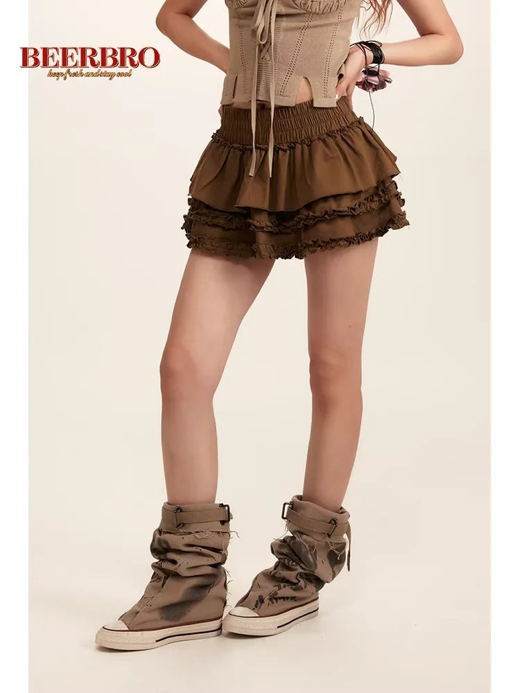 BeerBro Retro High Waist Ruffle Layered Shorts