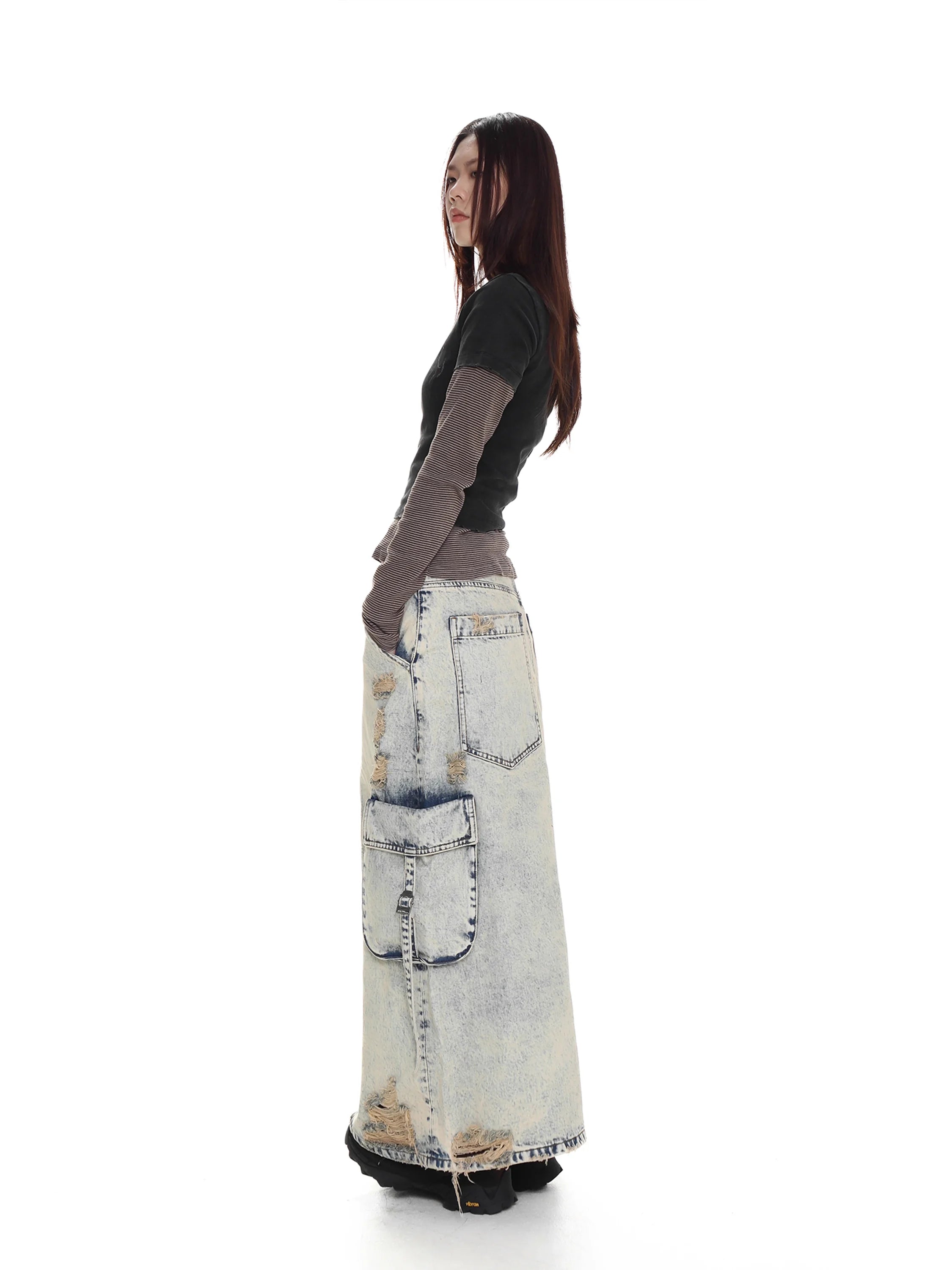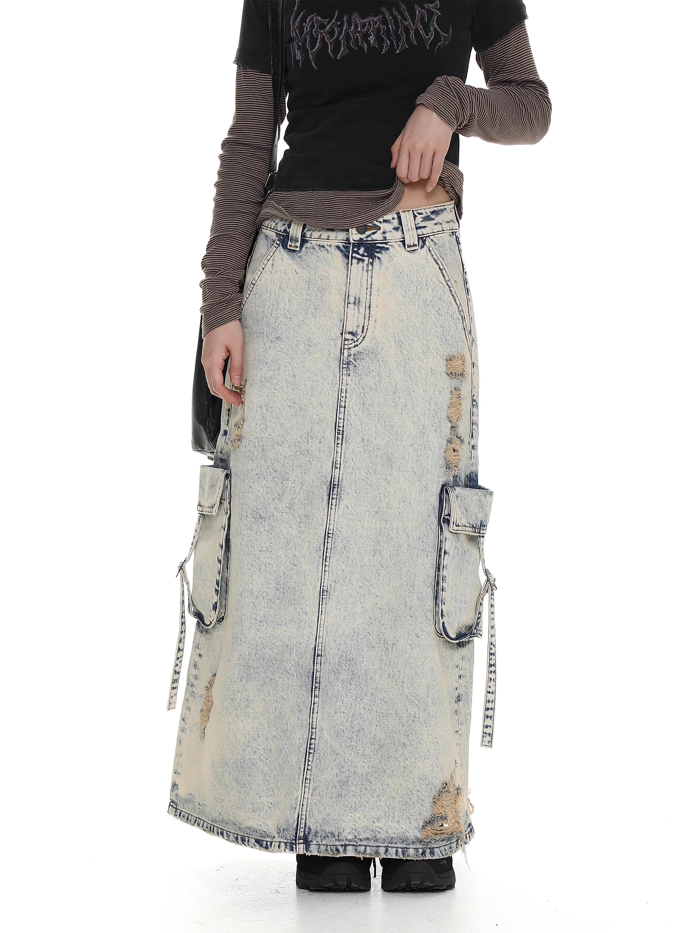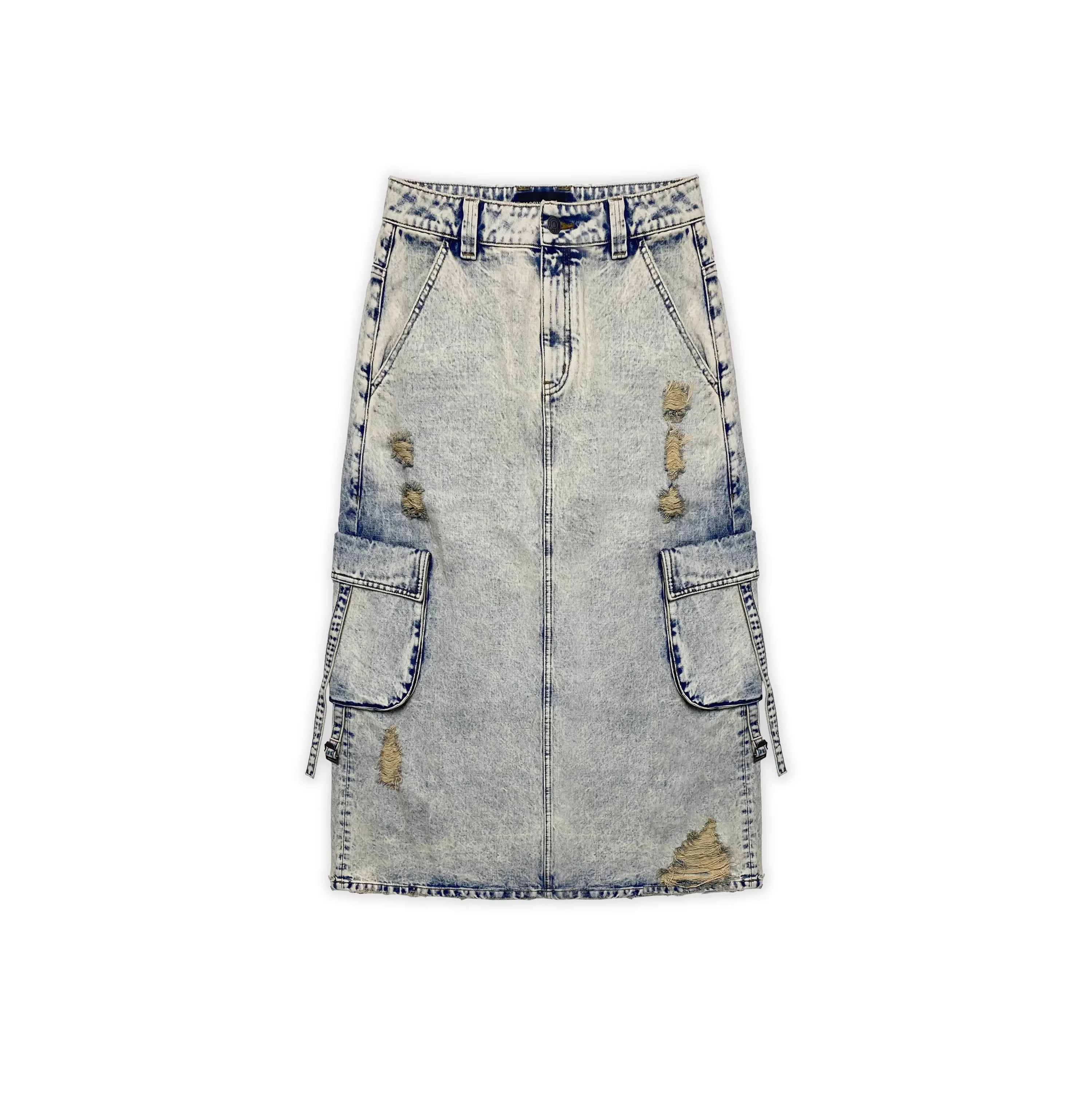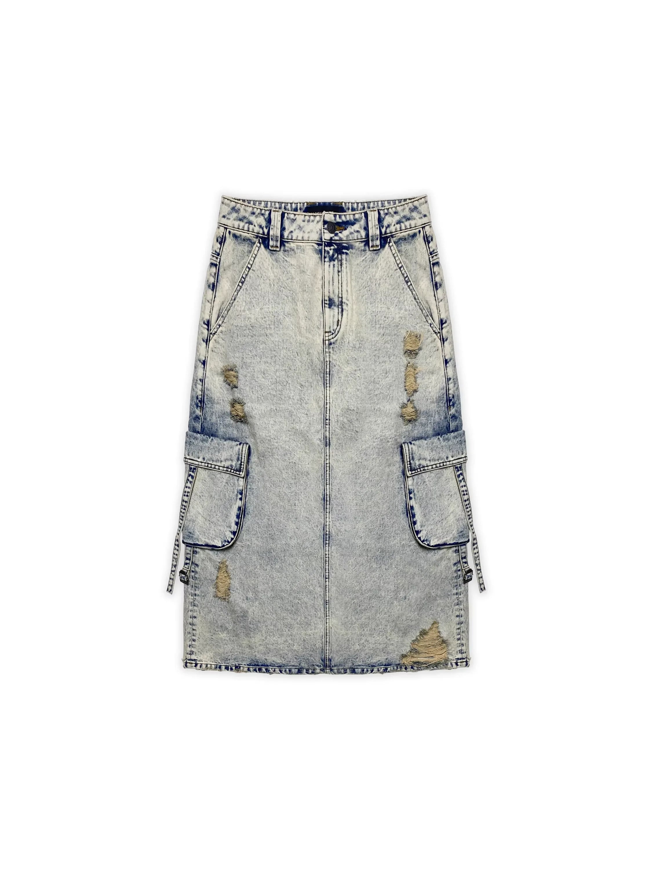MASONPRINCE Distressed Utility Denim Cargo Midi Skirt