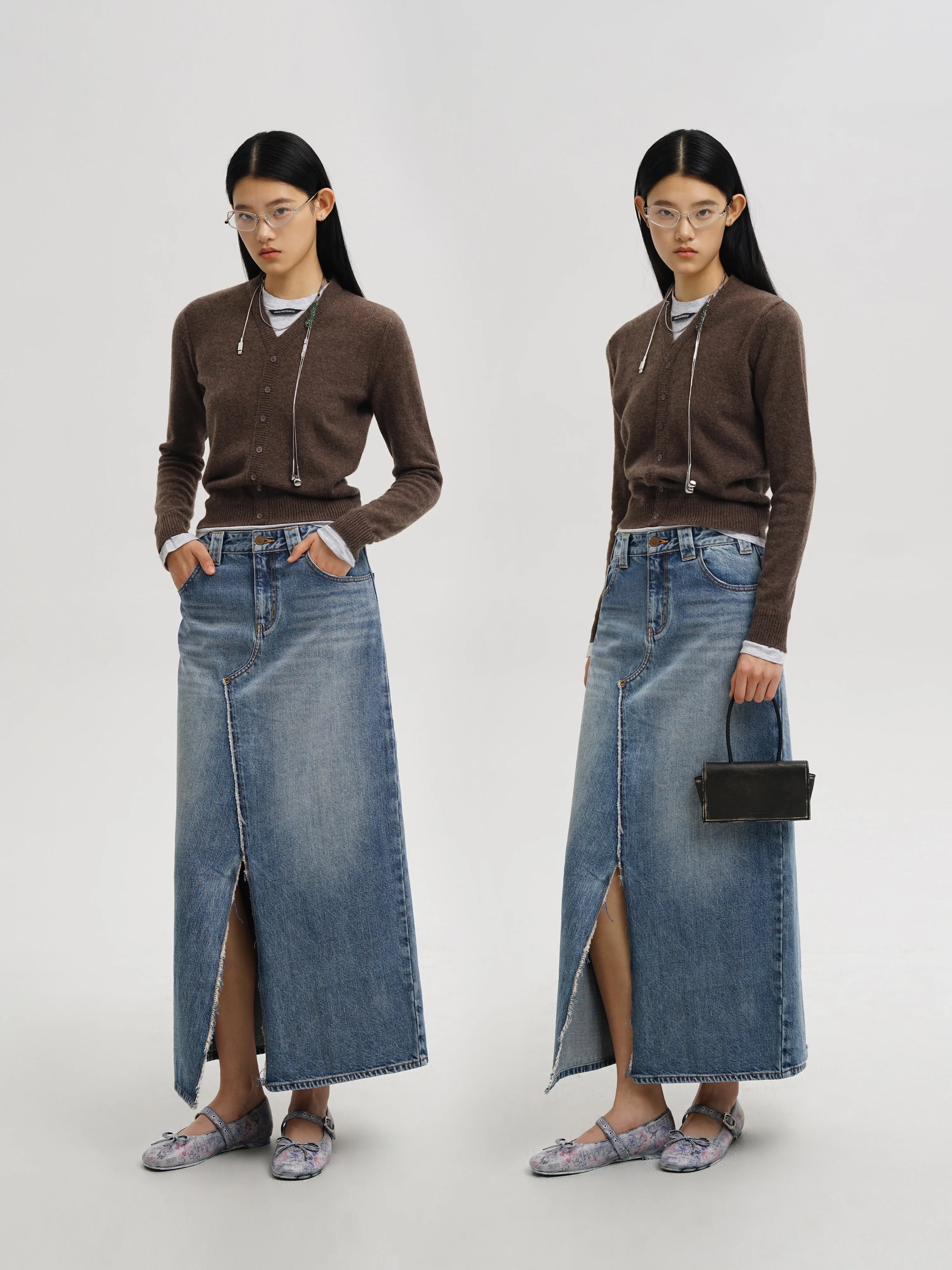 MASONPRINCE Faded Vintage Raw Hem Wide-Leg Denim Culottes