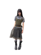NeverSeez Double-Layer Plaid Wrap Skirt