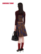 shushutong Winter Patchwork Lace Pleated Skirt Set