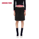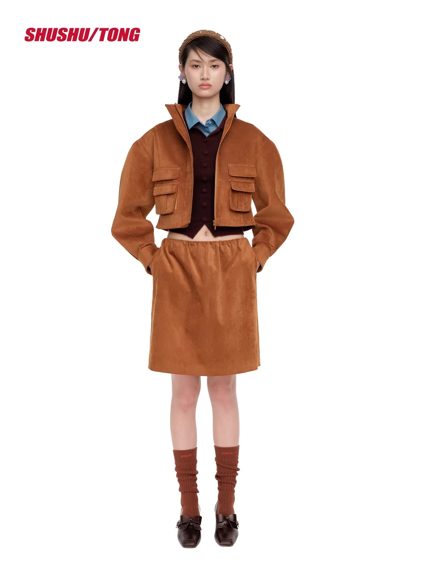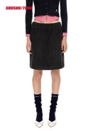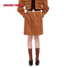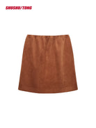 shushutong Winter Suede Ruched Knee-Length Skirt