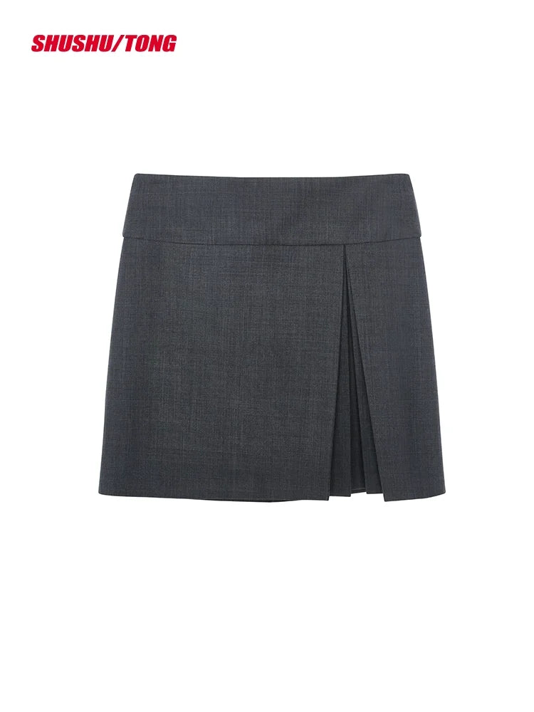 Elevate your wardrobe with this elegant and modern pleated mini skirt designed for women. Featuring a structured silhouette with a stylish side pleat detail, this skirt brings a contemporary edge to a classic commuter look. Its refined grey tone and sharp tailoring make it ideal for both professional and casual settings.