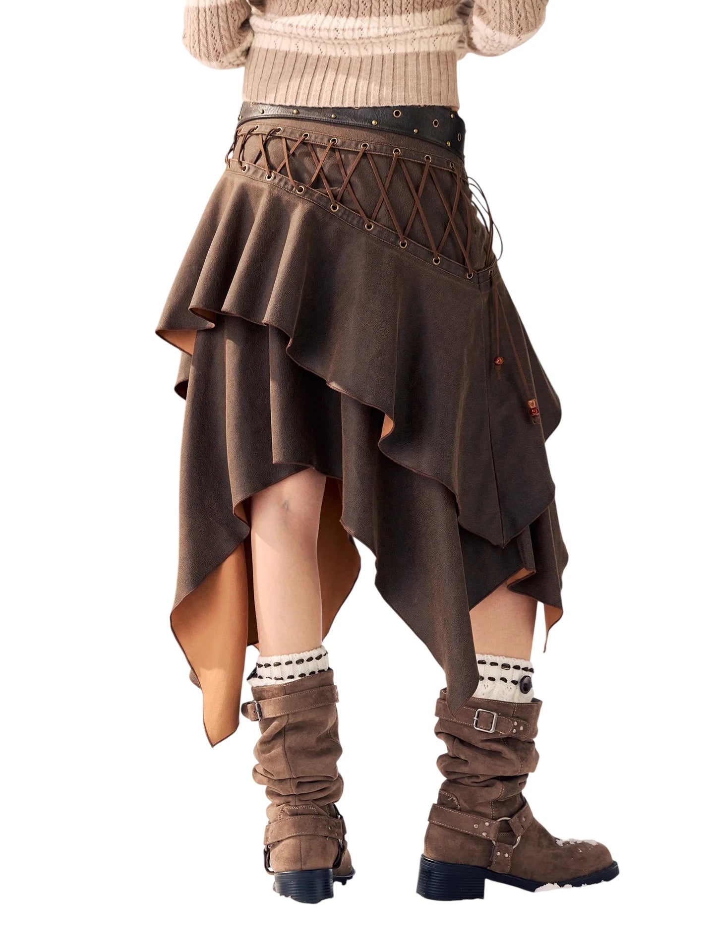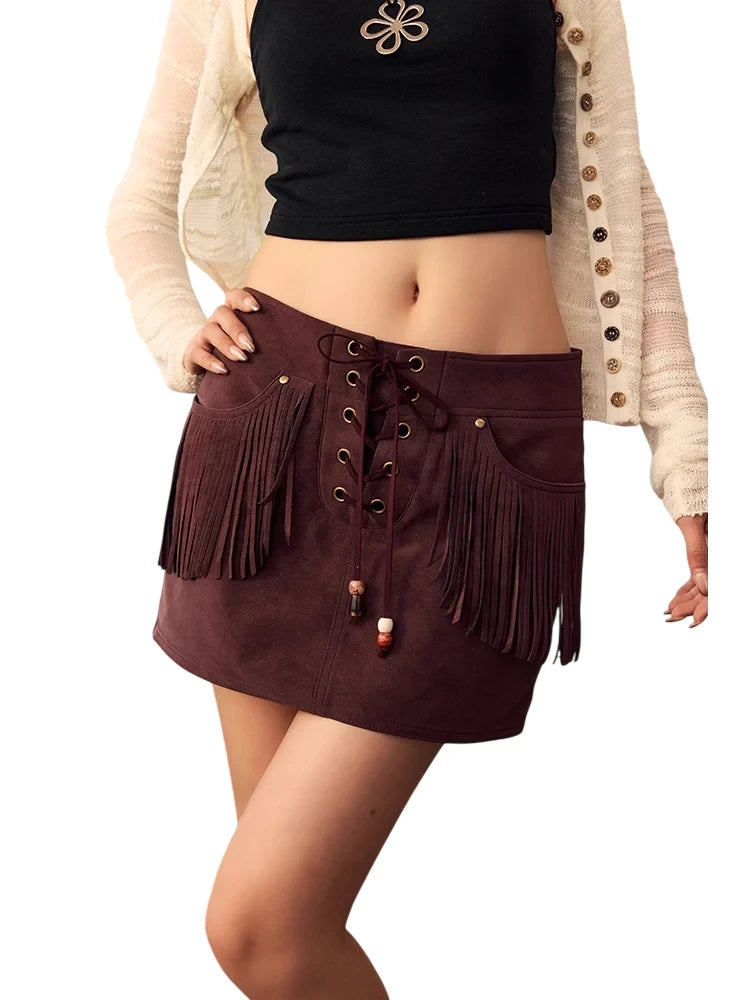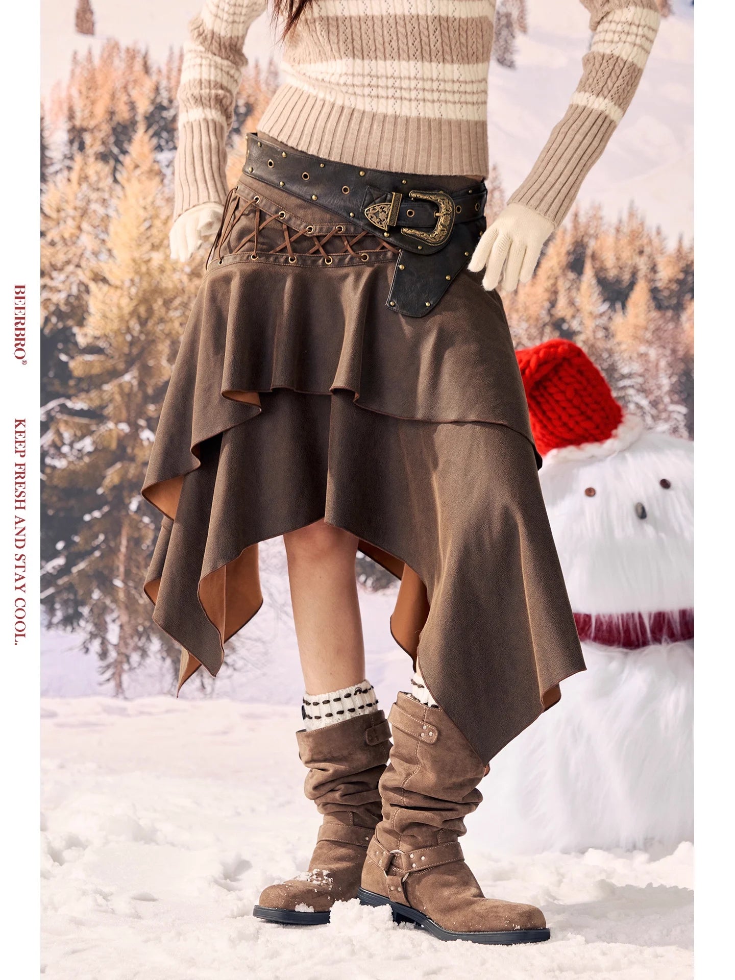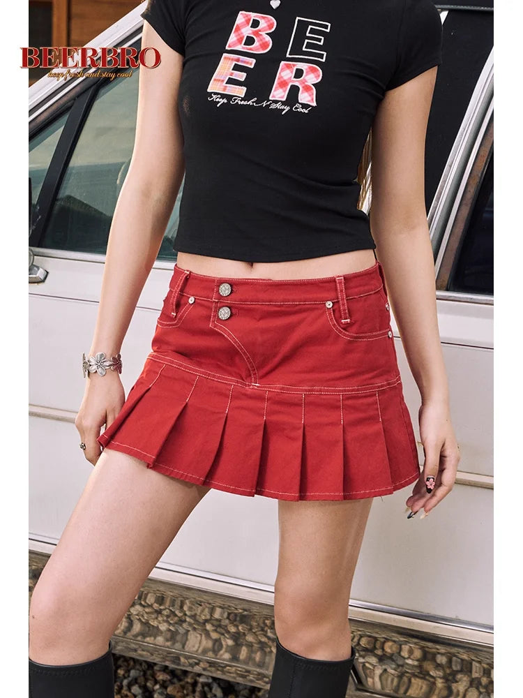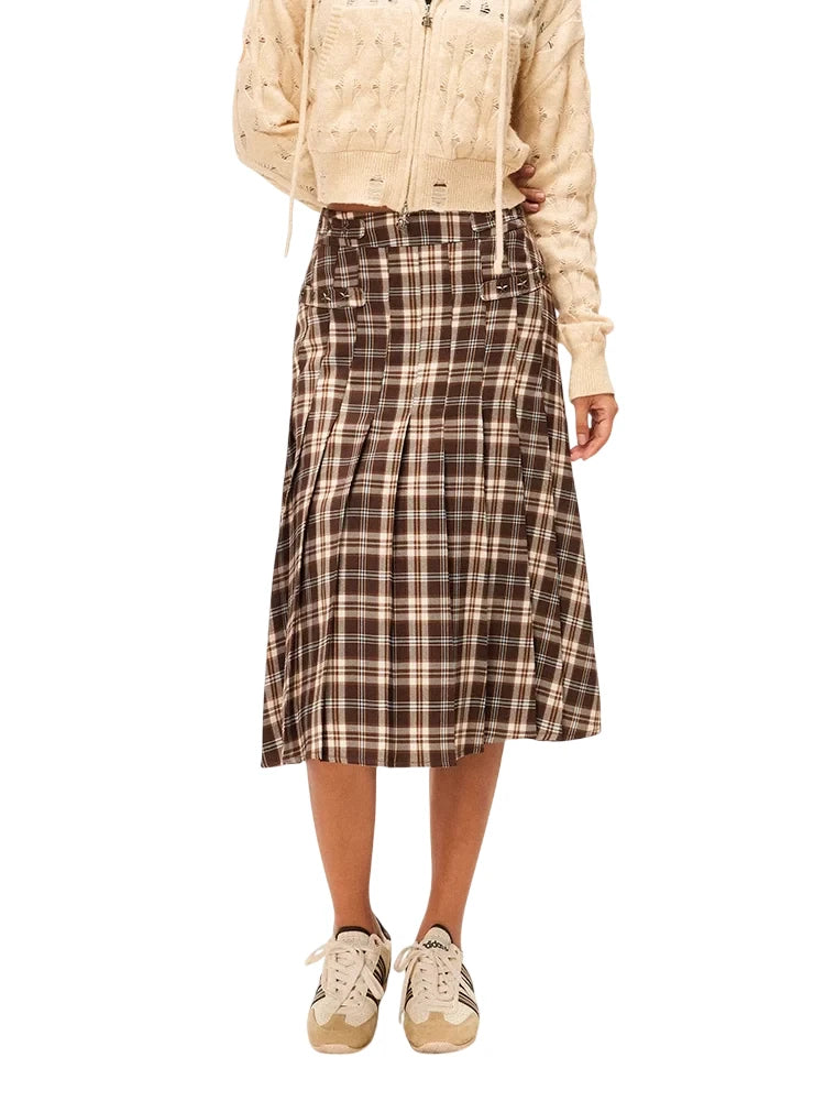 BeerBro Retro Plaid Low-Waist A-Line Skirt with Ruffled Waist