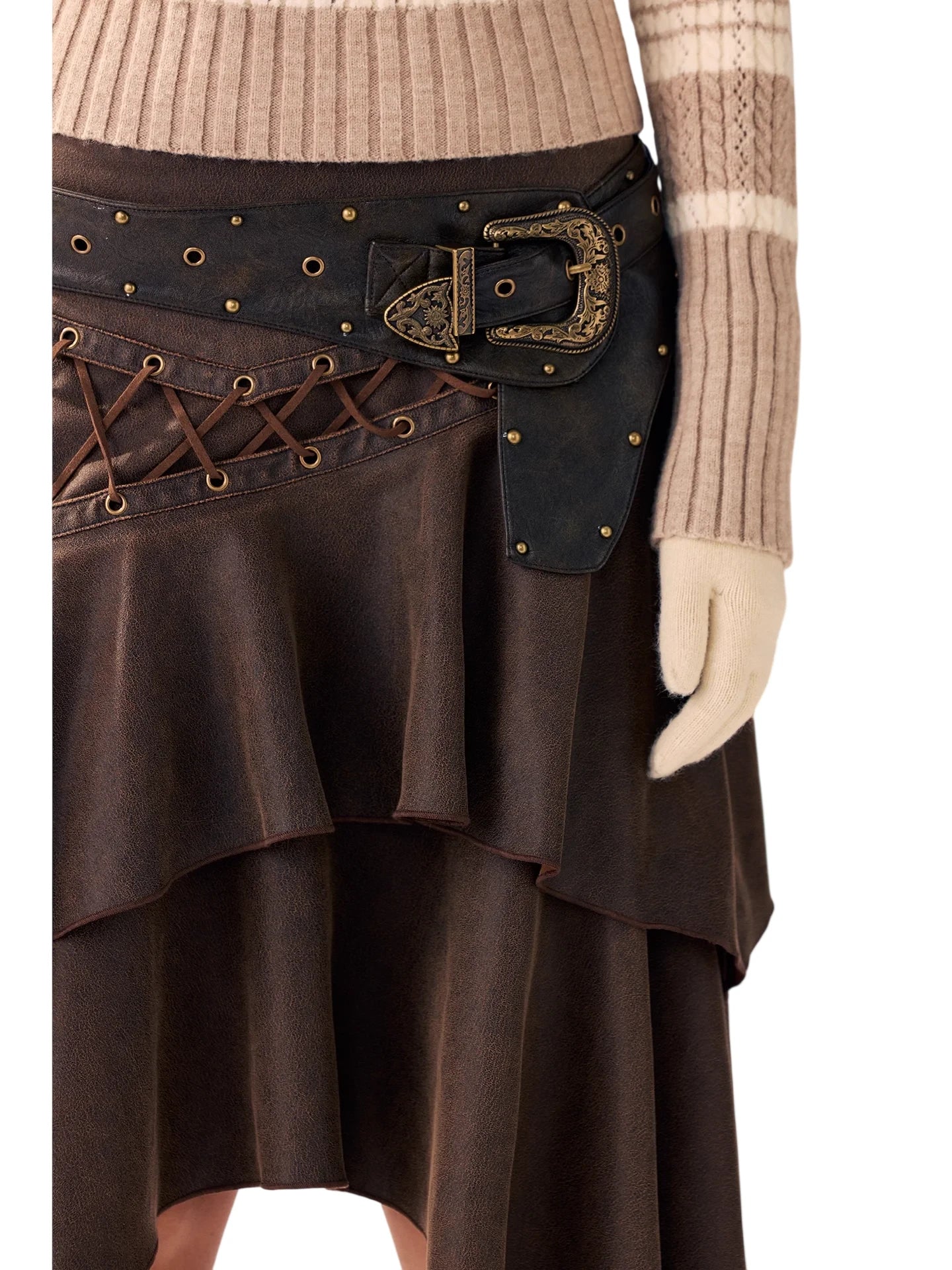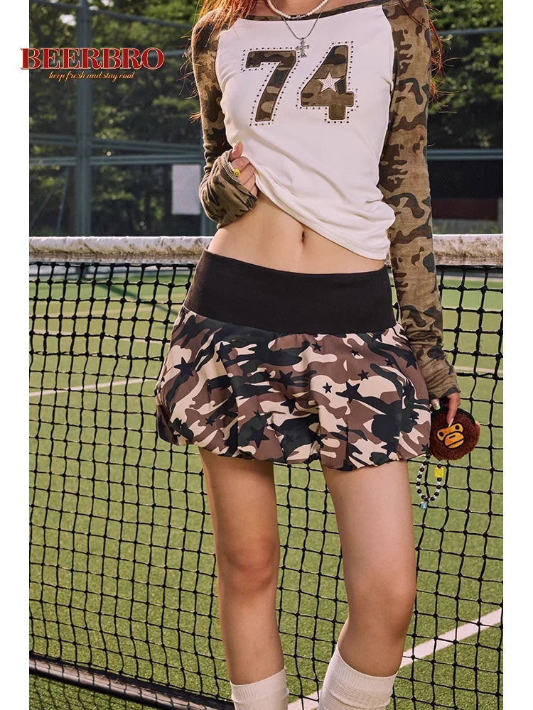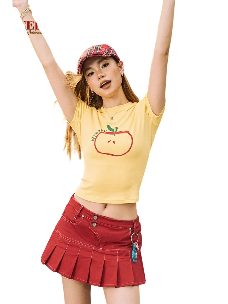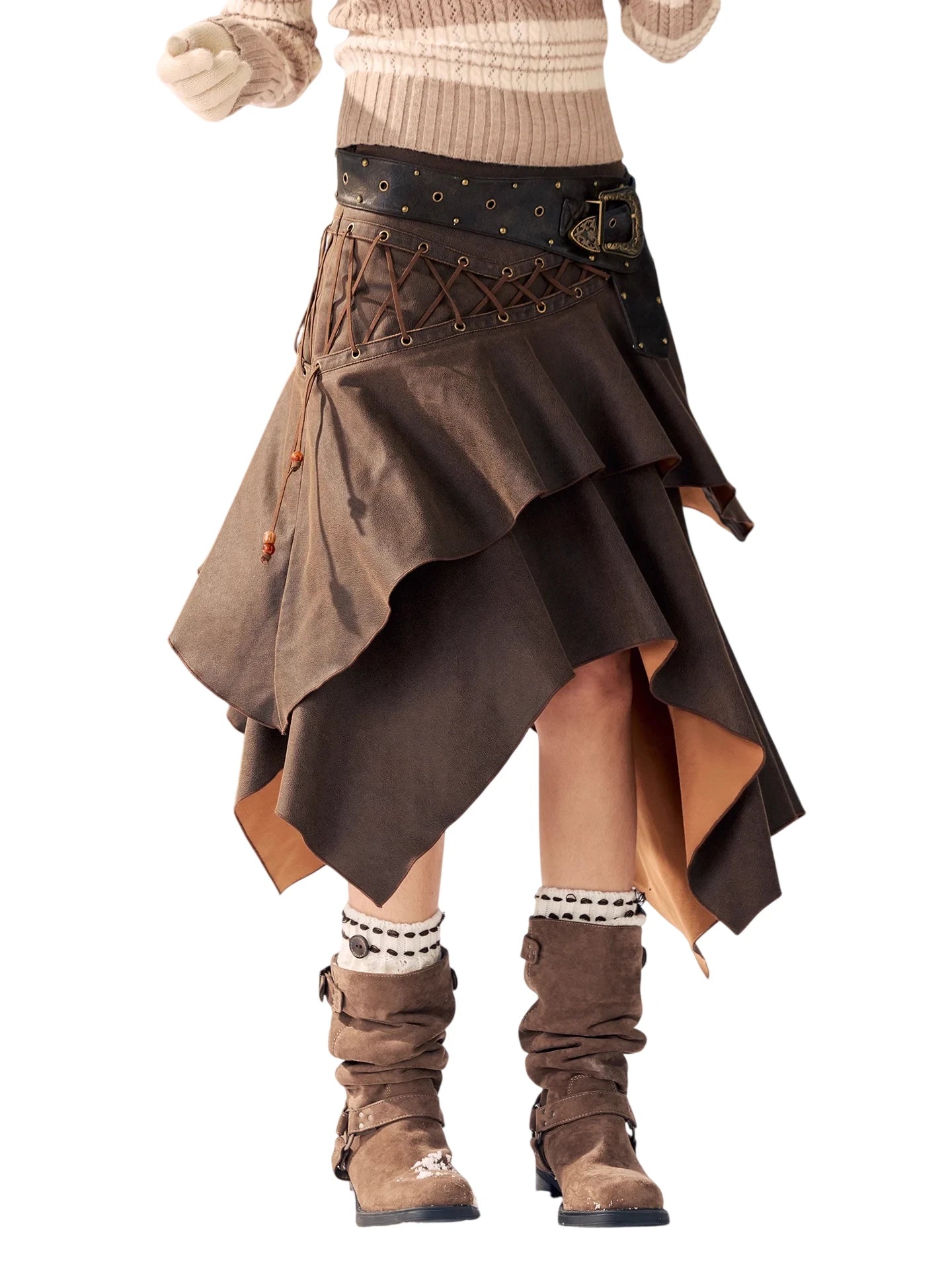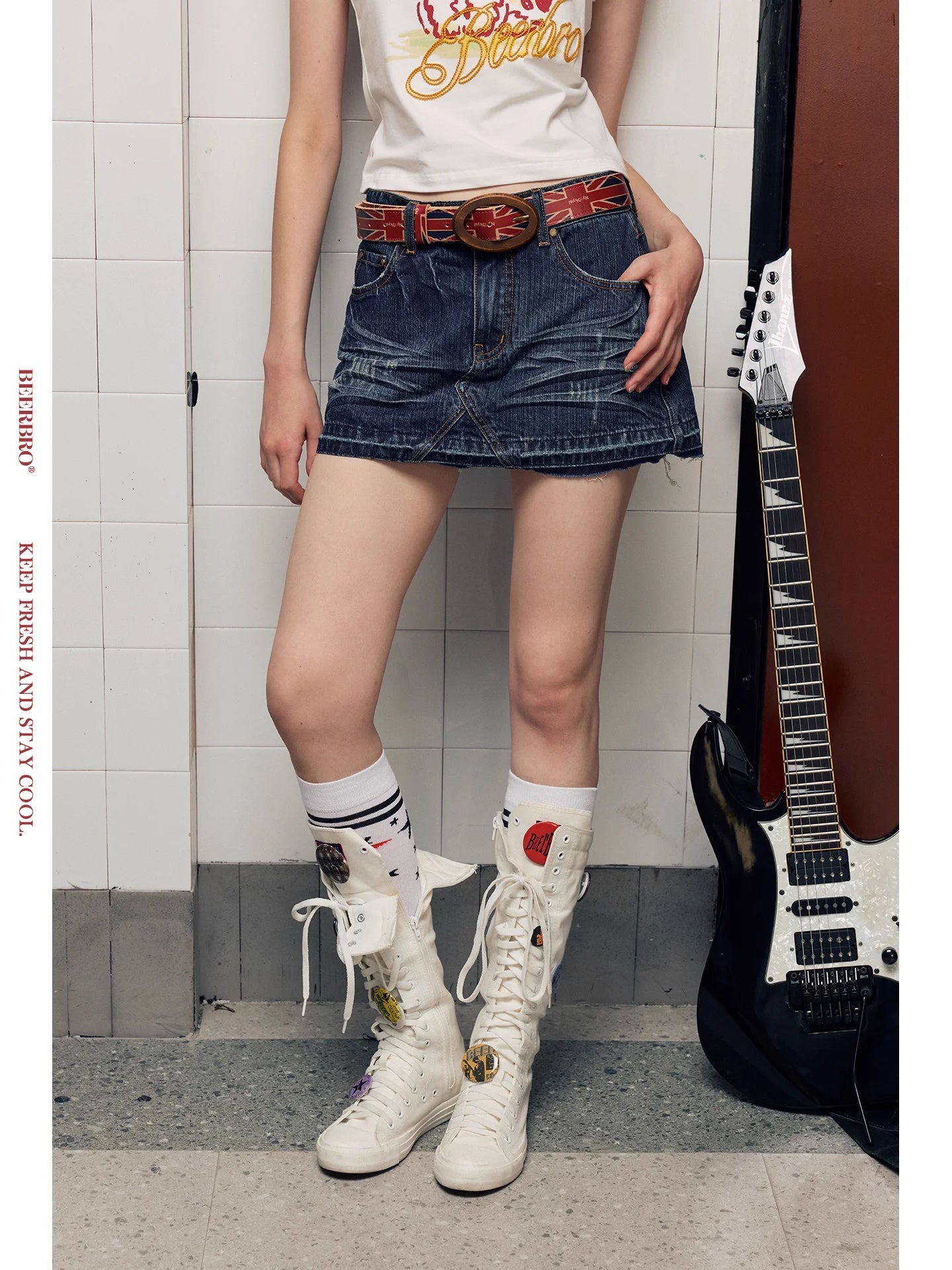 BeerBro Retro Plaid Low-Waist A-Line Skirt with Ruffled Waist