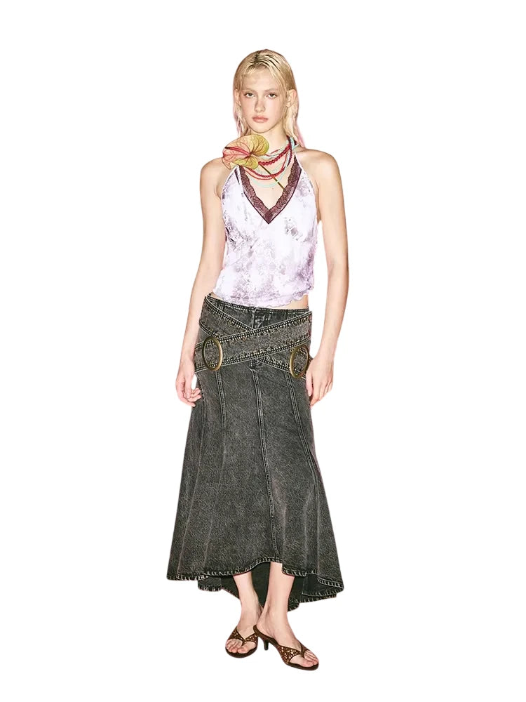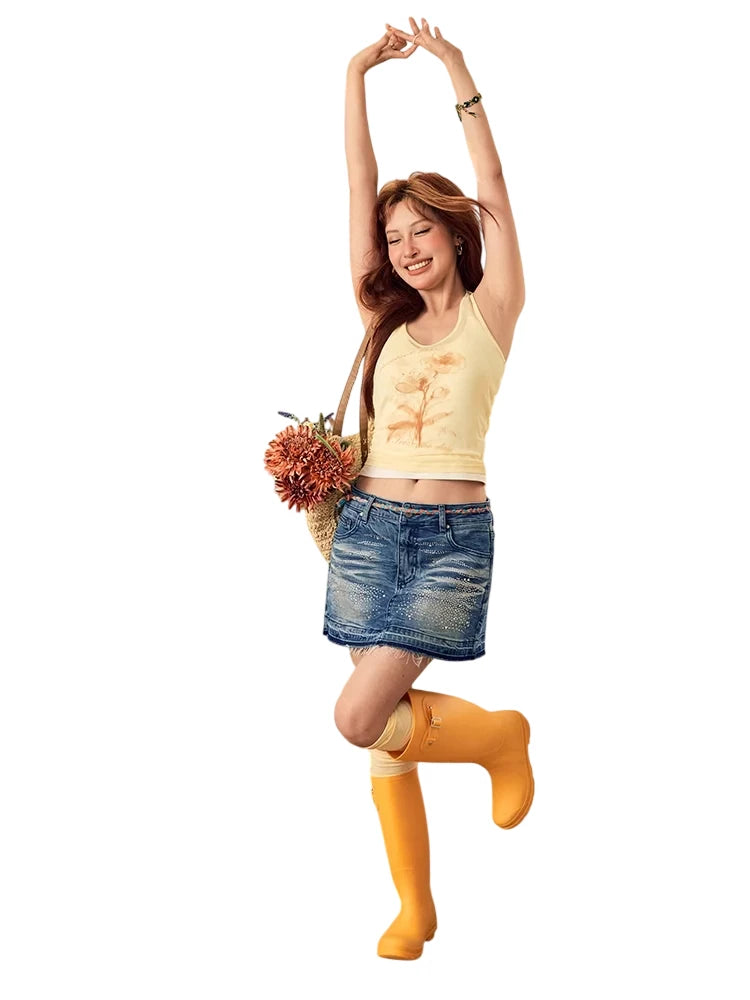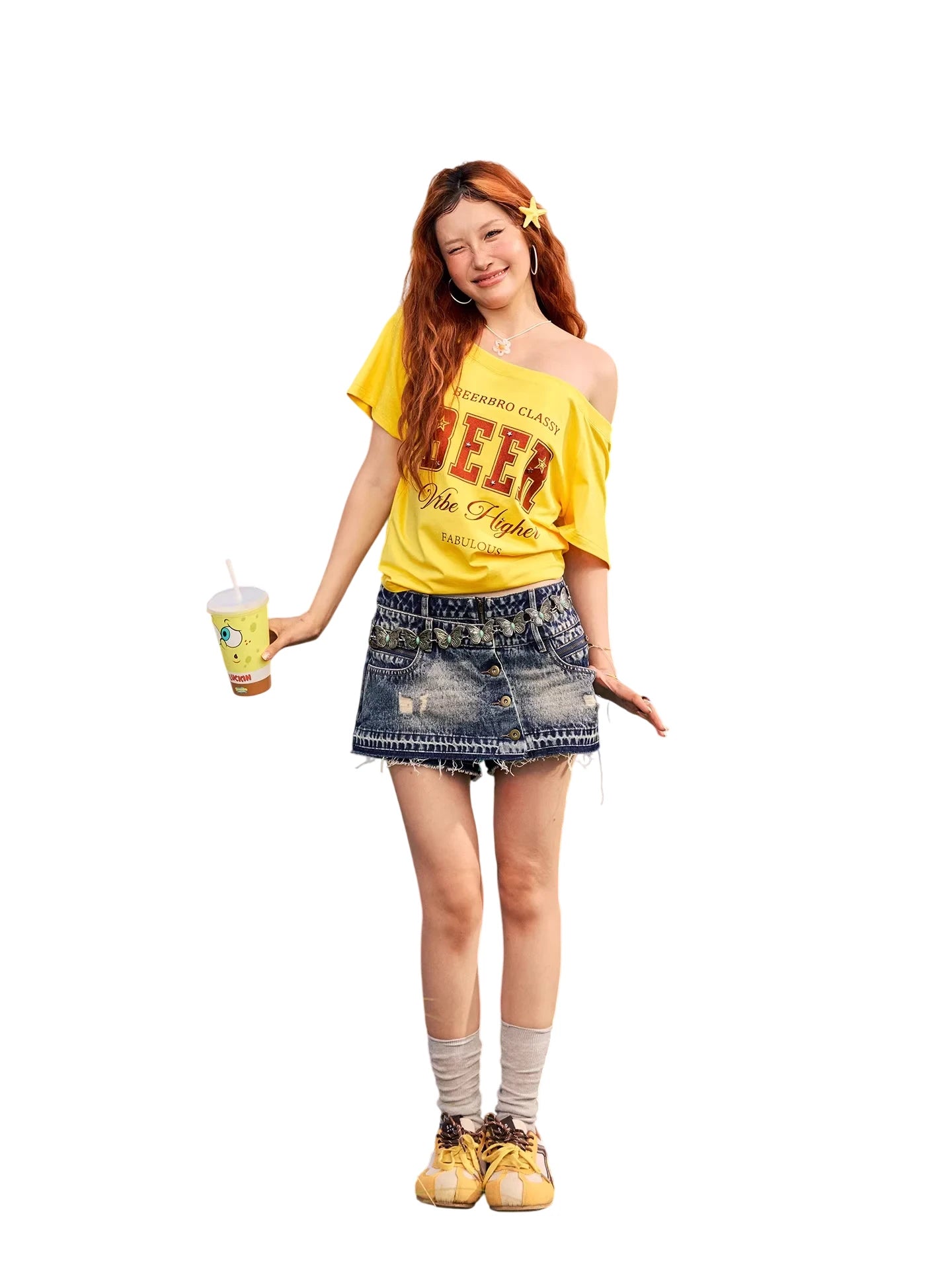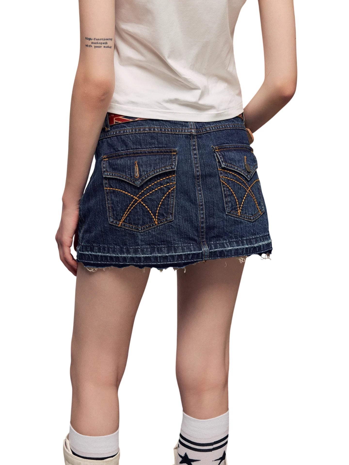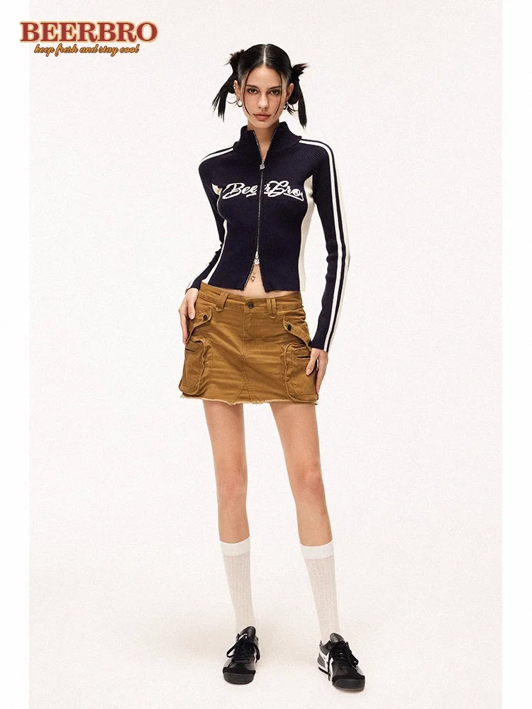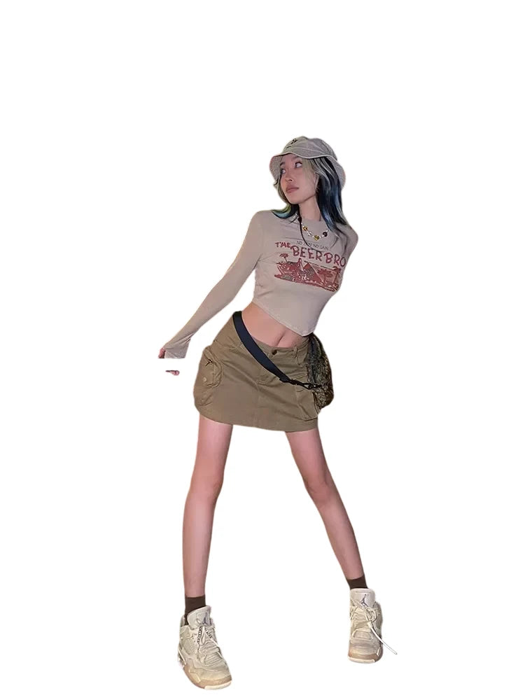 BeerBro Retro Plaid Low-Waist A-Line Skirt with Ruffled Waist