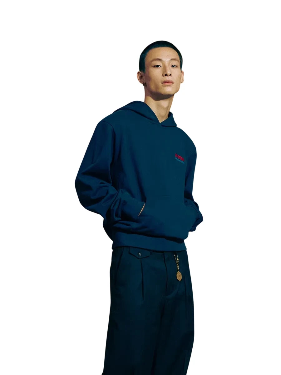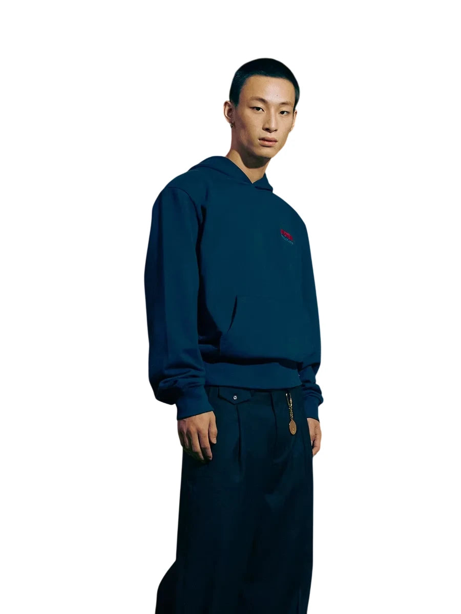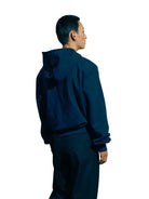 SOD Online Store Dark Blue Oversized Hooded Sweatshirt with Padded Shoulders