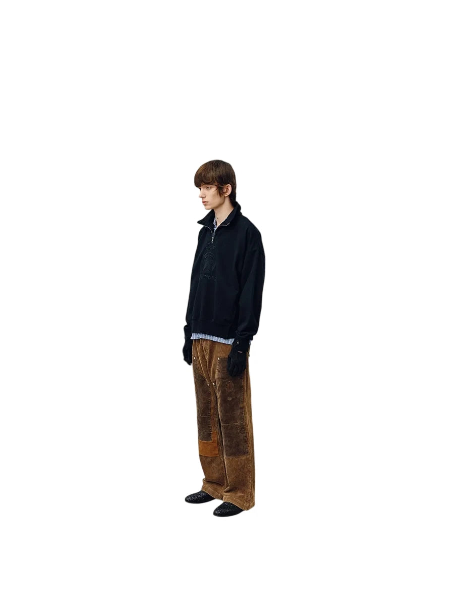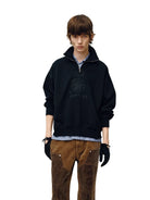 SOD Online Store Men's Black Oversized Quarter-Zip Cotton Sweatshirt