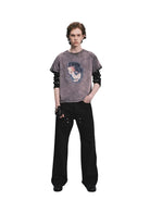 SOD Online Store Men's Black Wide-Leg Twisted Seam Denim Jeans
