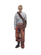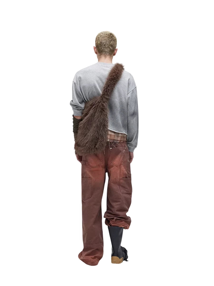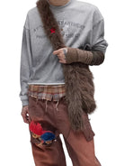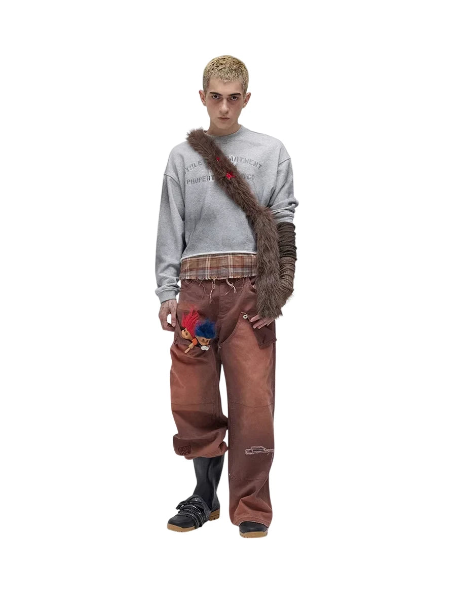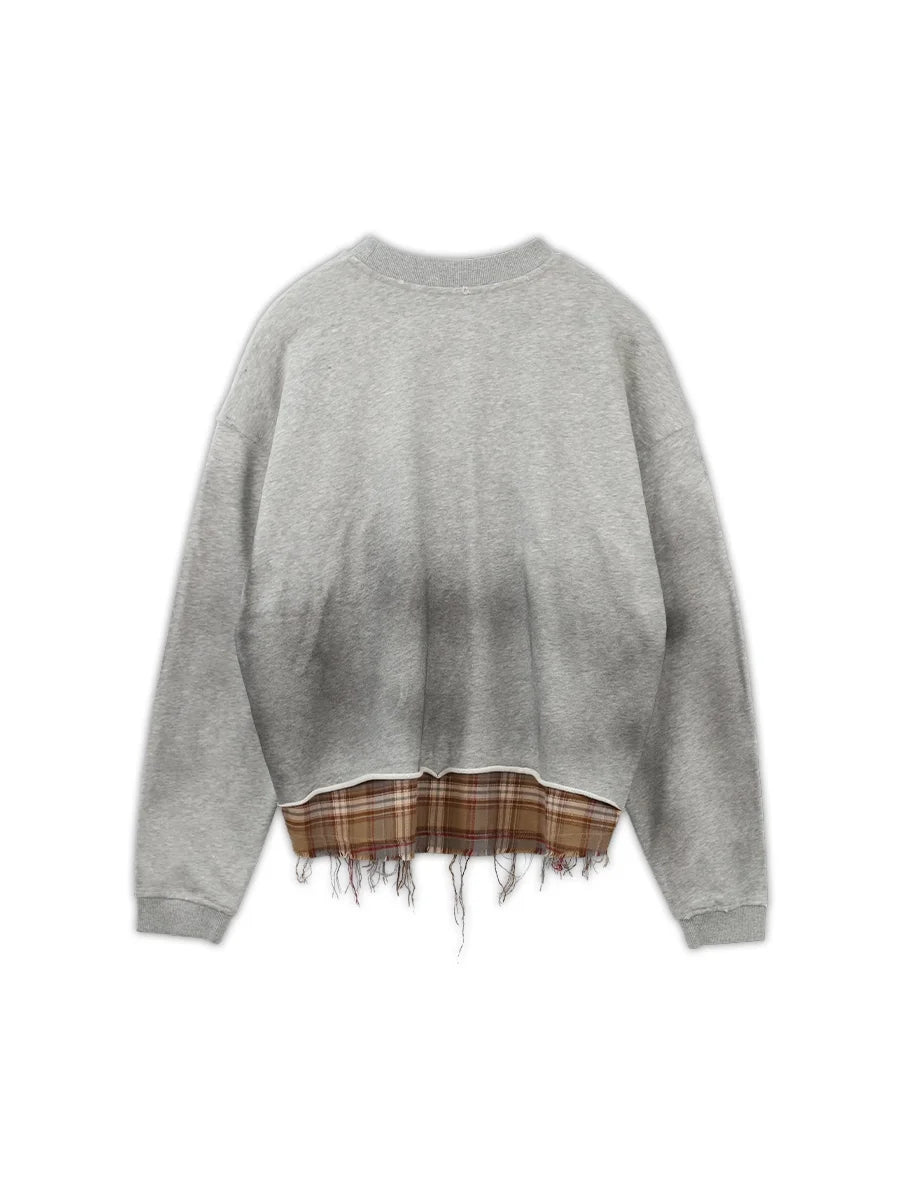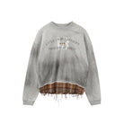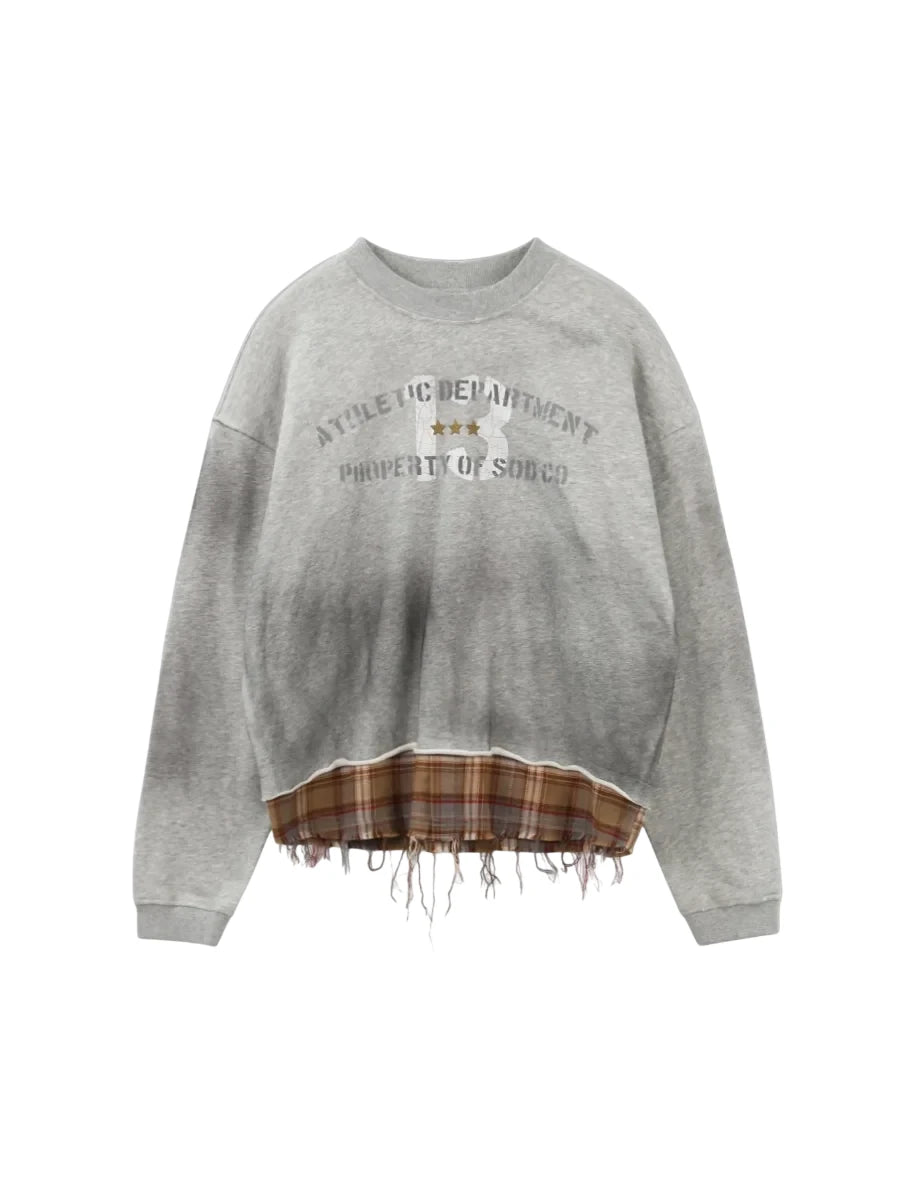 SOD Online Store Oversized Patchwork Sweatshirt with Plaid Layer and Distressed Hem
