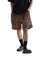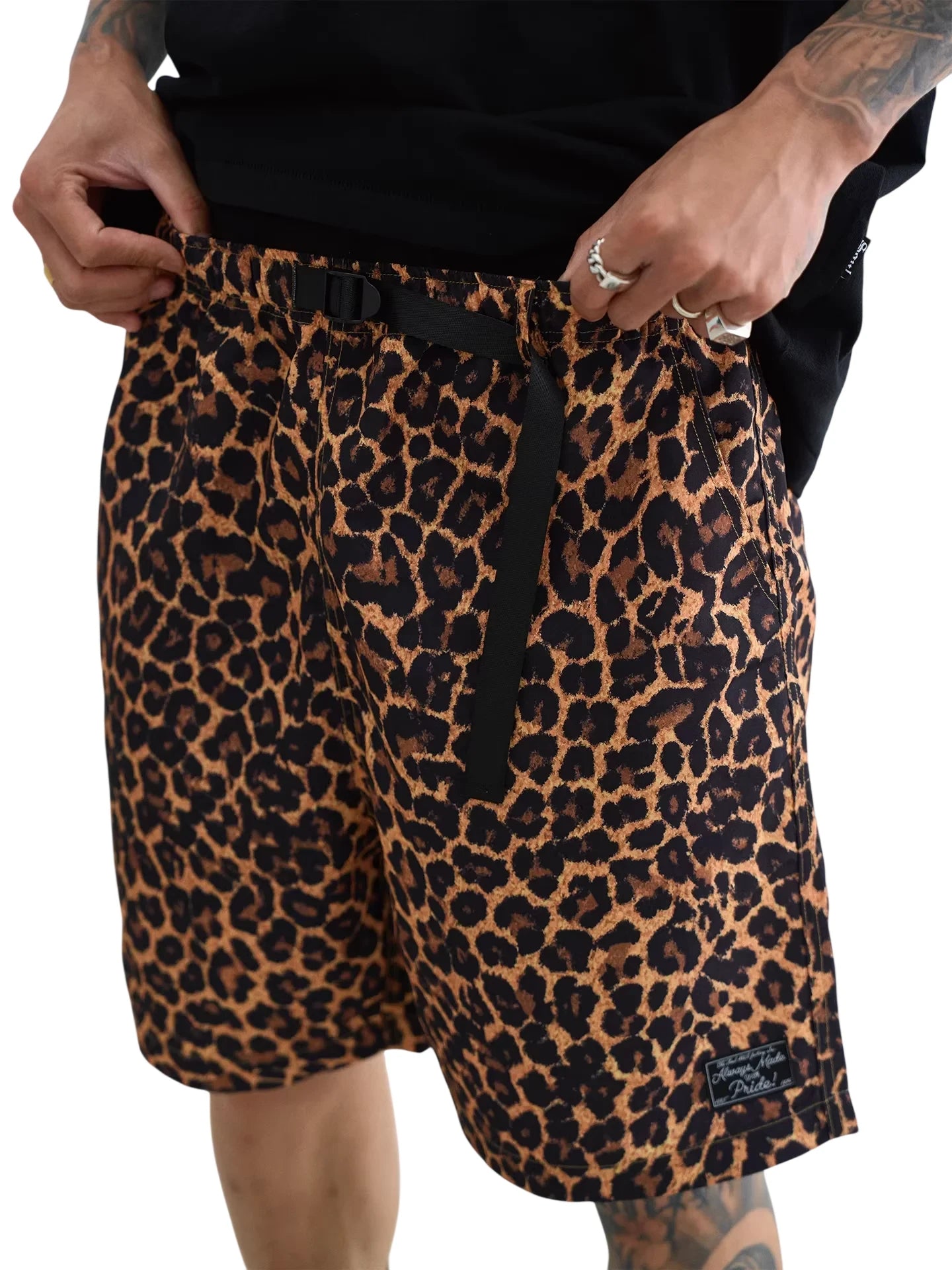 Upgrade your summer wardrobe with these men's quick-dry shorts featuring an all-over leopard print design in rich brown and black tones. Crafted from lightweight, breathable nylon, these shorts are perfect for outdoor activities, daily commuting, or sports. They come equipped with a built-in adjustable belt at the waistband for a secure and stylish fit. The loose fit ensures comfort and mobility, while a subtle designer patch at the hem adds a touch of sophistication. Ideal for Spring and Summer wear, these shorts balance bold style with everyday practicality.