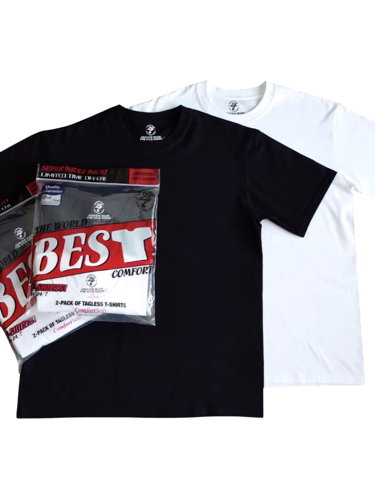 Upgrade your everyday essentials with this pack of two men's t-shirts, featuring one black and one white short sleeve crew neck. Made from 100% pure cotton, these tagless tees offer superior comfort and a soft feel, perfect for casual wear. Designed for breathability and ease, they're a must-have wardrobe staple for any season.