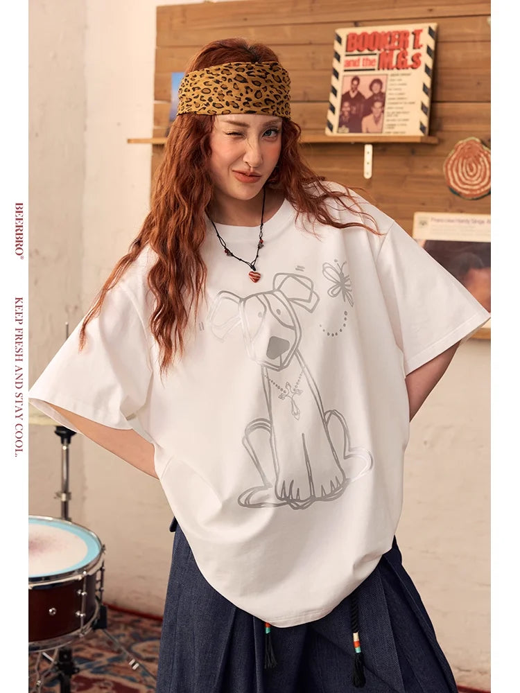 BeerBro Puppy Graphic Lyocell Loose T-Shirt
