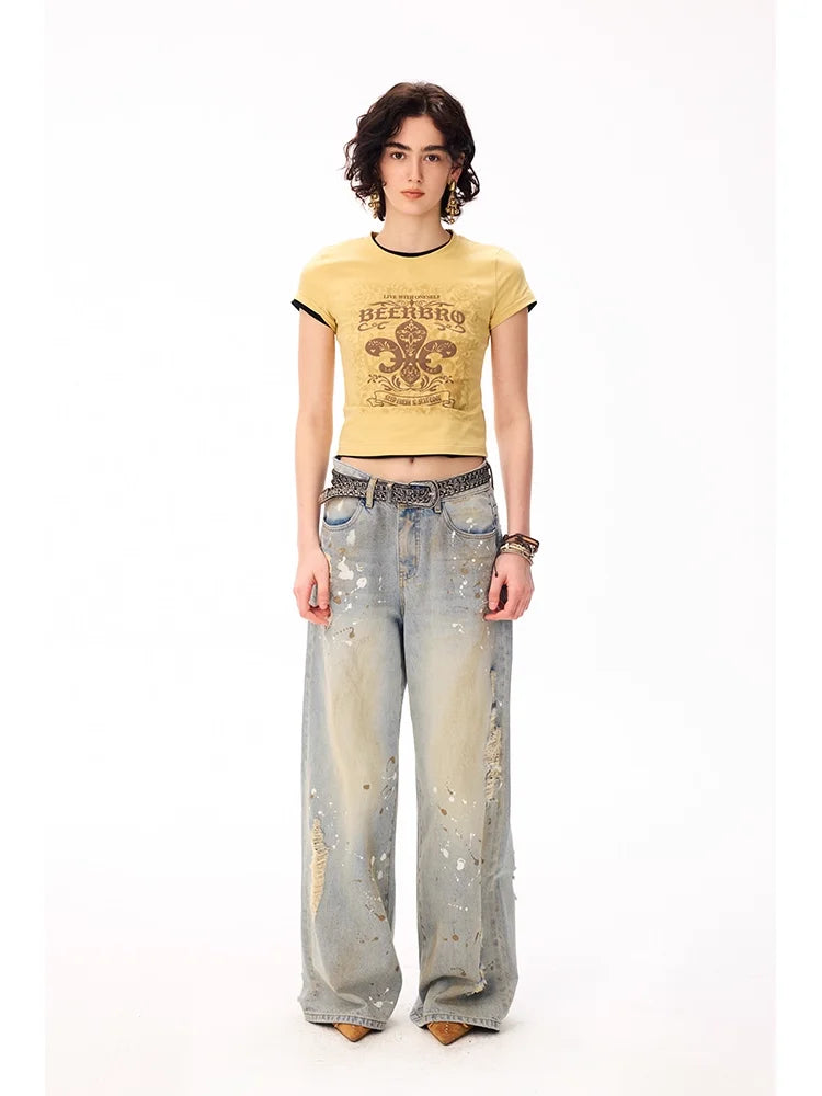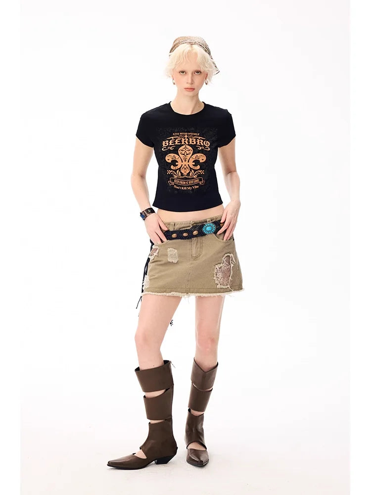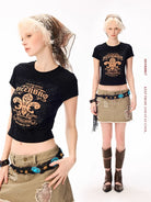Elevate your streetwear style with this high-stretch, fitted cropped T-shirt designed for women. Featuring a bold puff print graphic, this T-shirt adds an edgy flair to any outfit. The soft knit fabric ensures comfort and flexibility, perfect for pairing with skirts or jeans. Its cropped silhouette and eye-catching design make it an essential piece for a modern, fashion-forward look.
