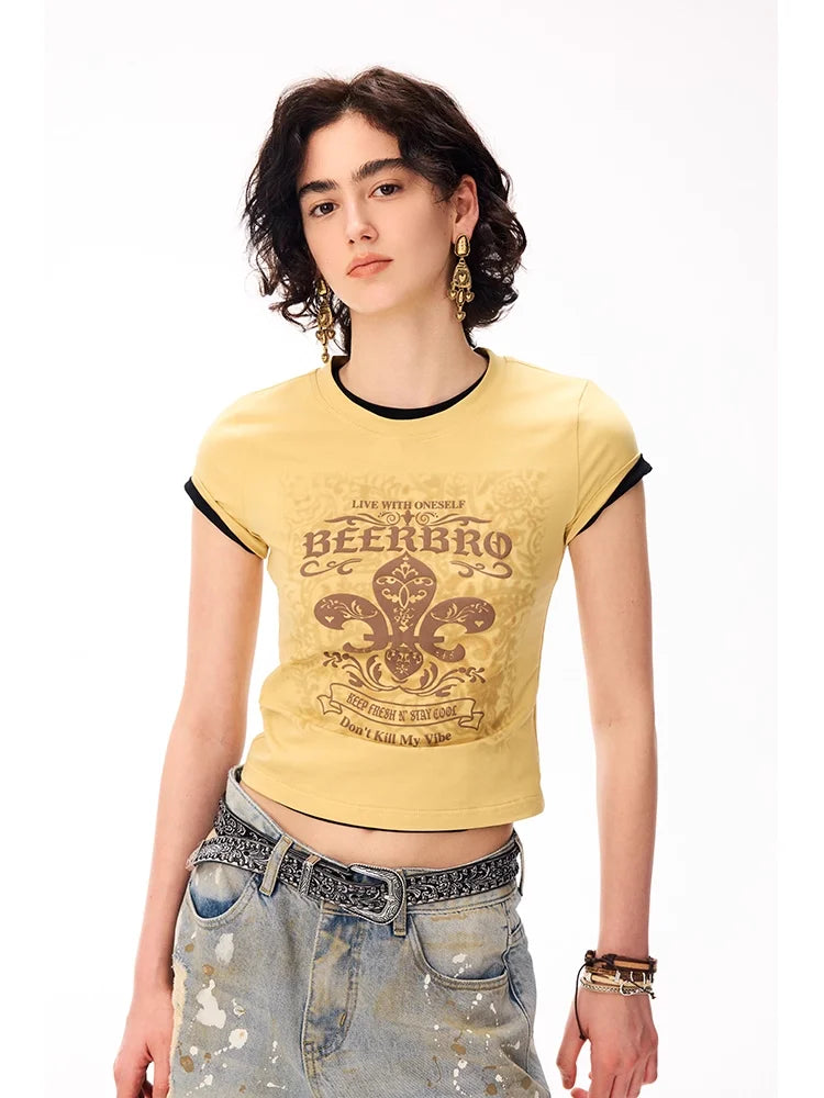 BeerBro Women's Fitted Cropped Graphic T-Shirt with Puff Print
