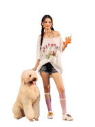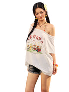 BeerBro Women's Off-Shoulder Summer T-Shirt with Playful Graphic Print