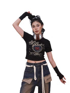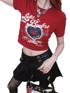 Step into summer with this stylish Y2K-inspired women's crop top. Designed with a snug, fitted cut and short sleeves, this trendy piece features bold graphic text "Light Beer" and a heart motif for an edgy, nostalgic look. Perfect for casual outings, beach days, or music festivals, this crop top pairs effortlessly with shorts, layered accessories, and streetwear accents to express your unique vibe.