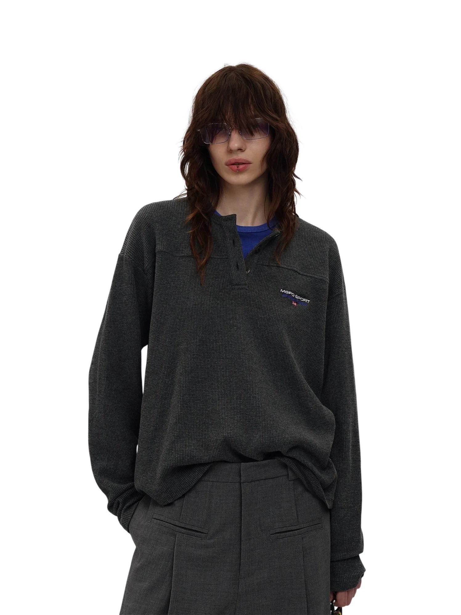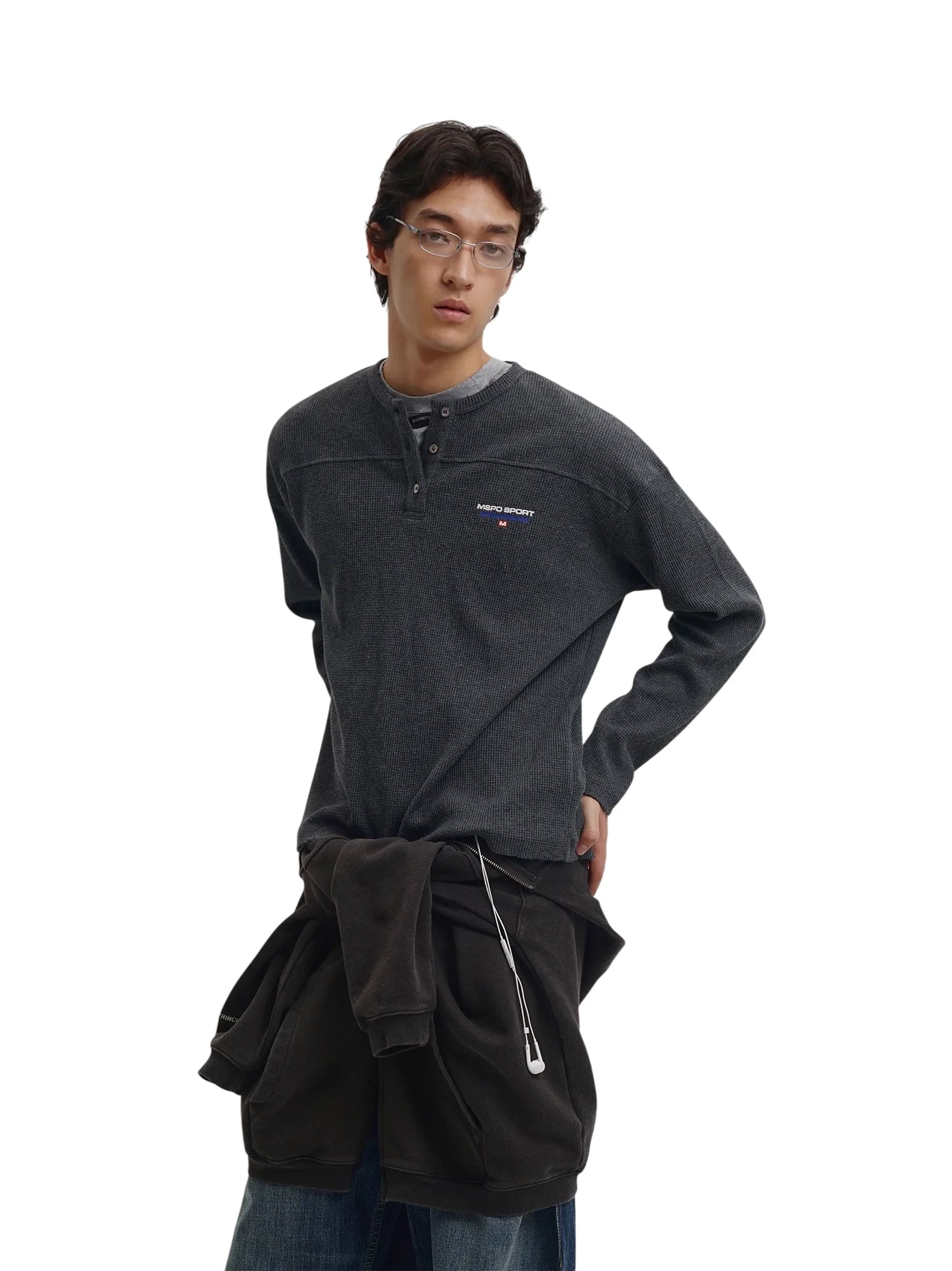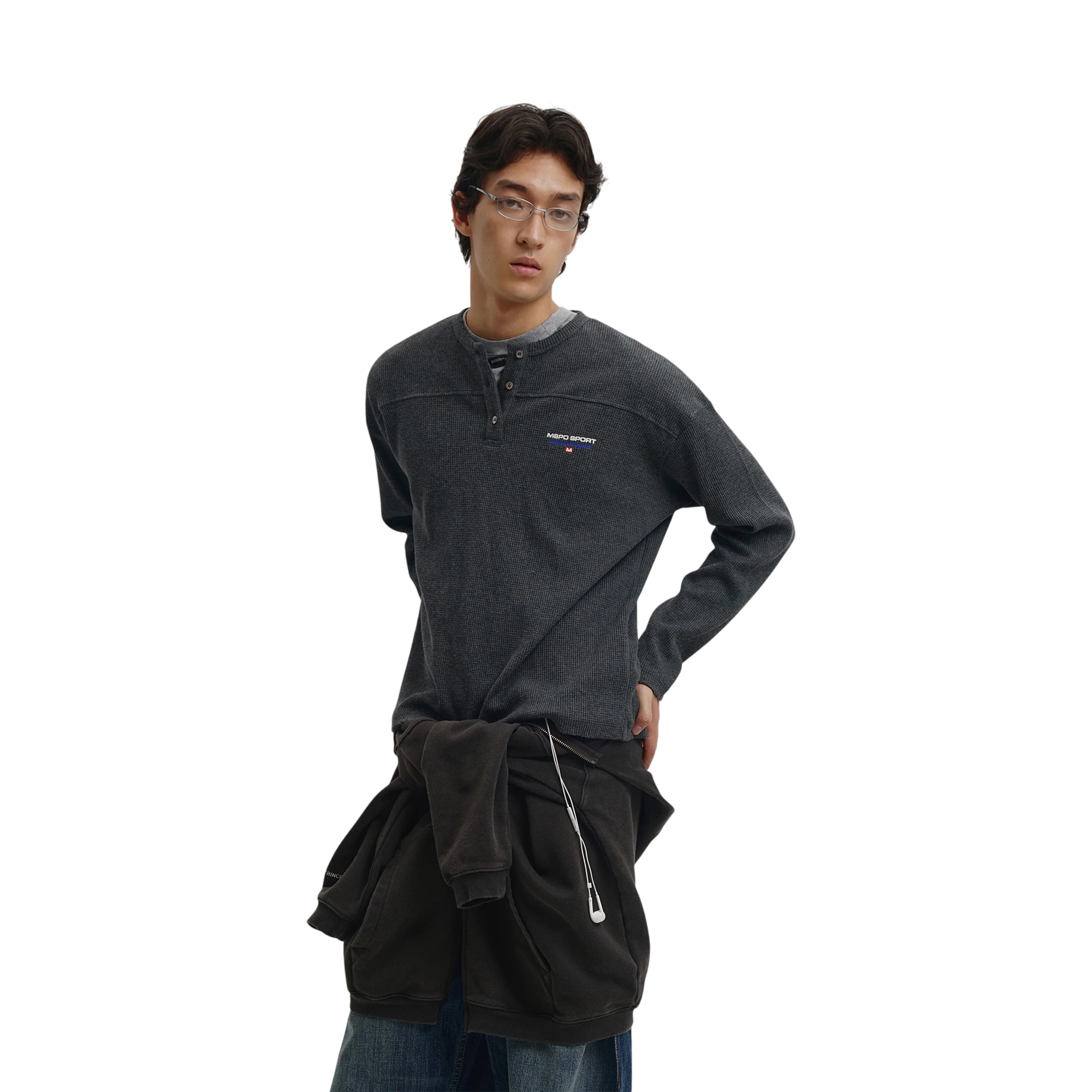 MASONPRINCE Men's Waffle Knit Henley Long Sleeve Shirt - Autumn Classic